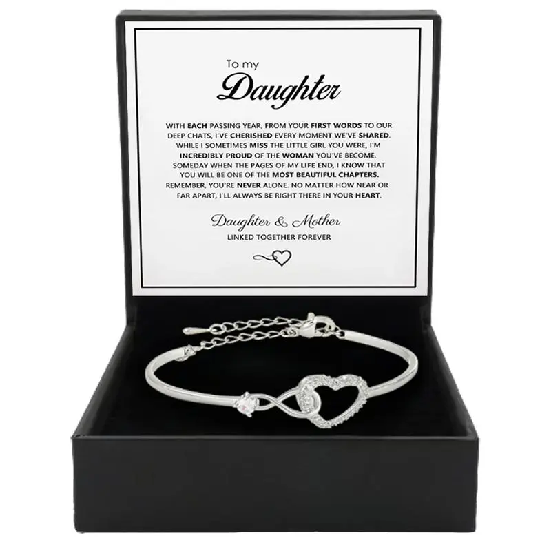 This bracelet is a thoughtful gift for your daughter's milestones. The infinity heart design and high-quality construction make it a special keepsake. Comes with a gift box, ensuring it arrives beautifully presented. Ideal for celebrating important moments.