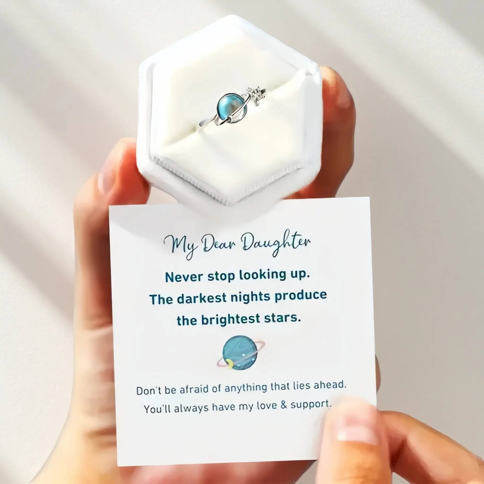🌟 To My Daughter Gift Star & Moon Rotatable Ring 🌙
