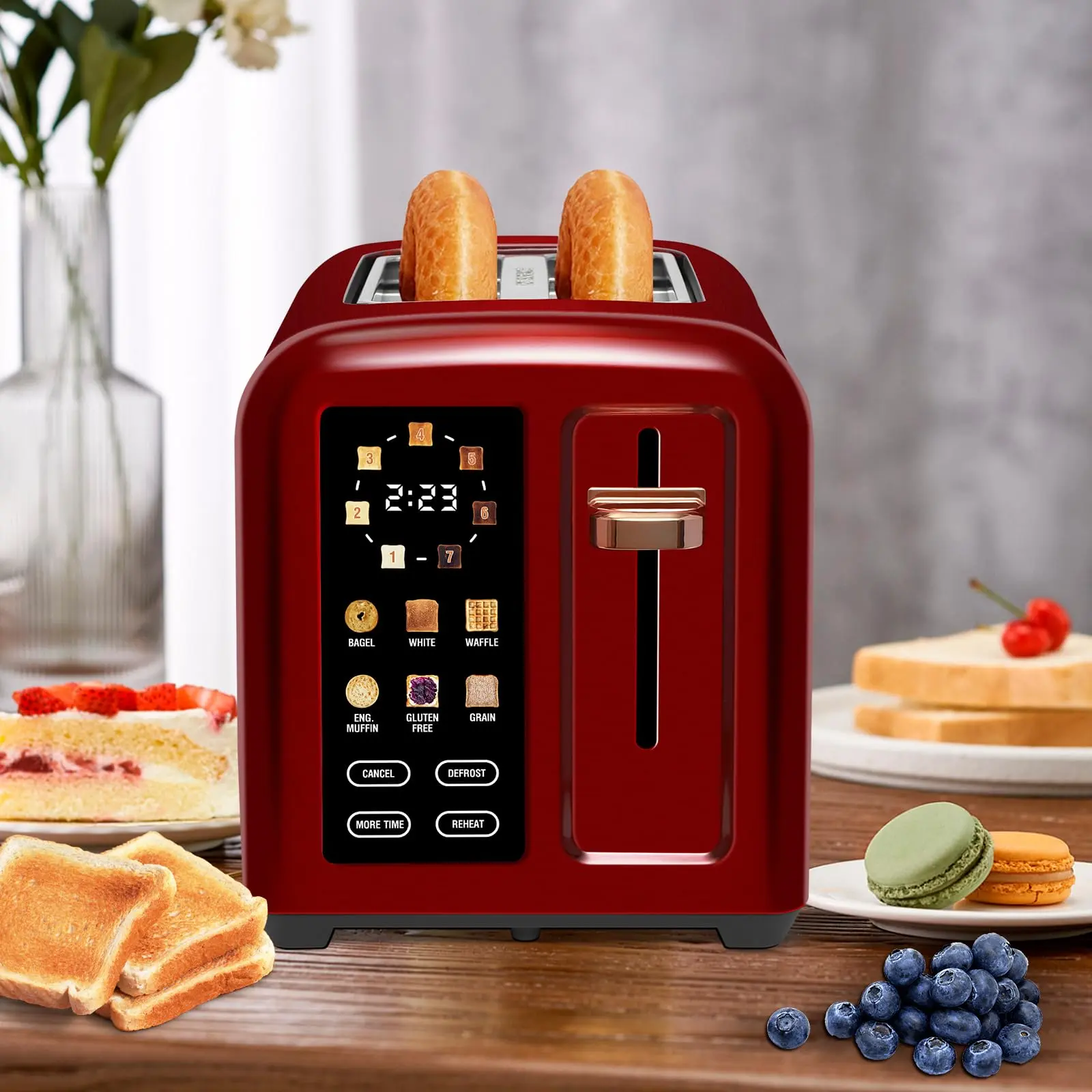 ·LCD Display & Touch Control: This smart toaster has large, color display to show you shade setting, bread type and countdown. You know when the bread will pop up. Sensitive touch control makes operation incredibly simple. Touch any icon to get the desired settings