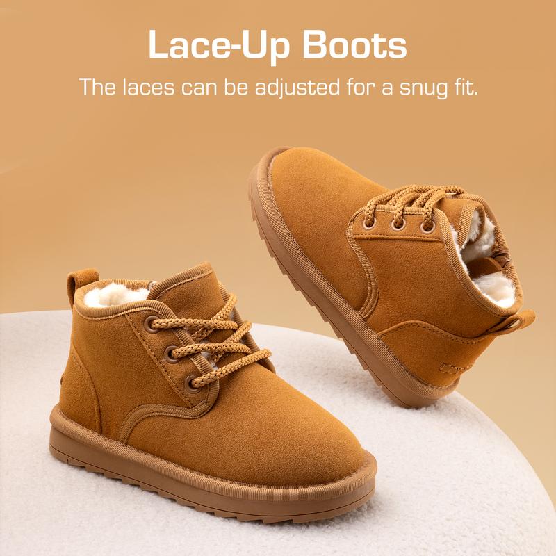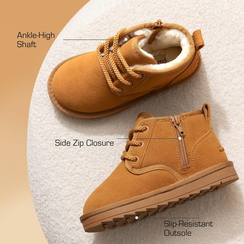 ·Warm & Cozy: These kids' winter boots feature a faux suede upper that provides better insulation against the cold and a plush faux fur lining that wraps little feet in warmth and comfort.