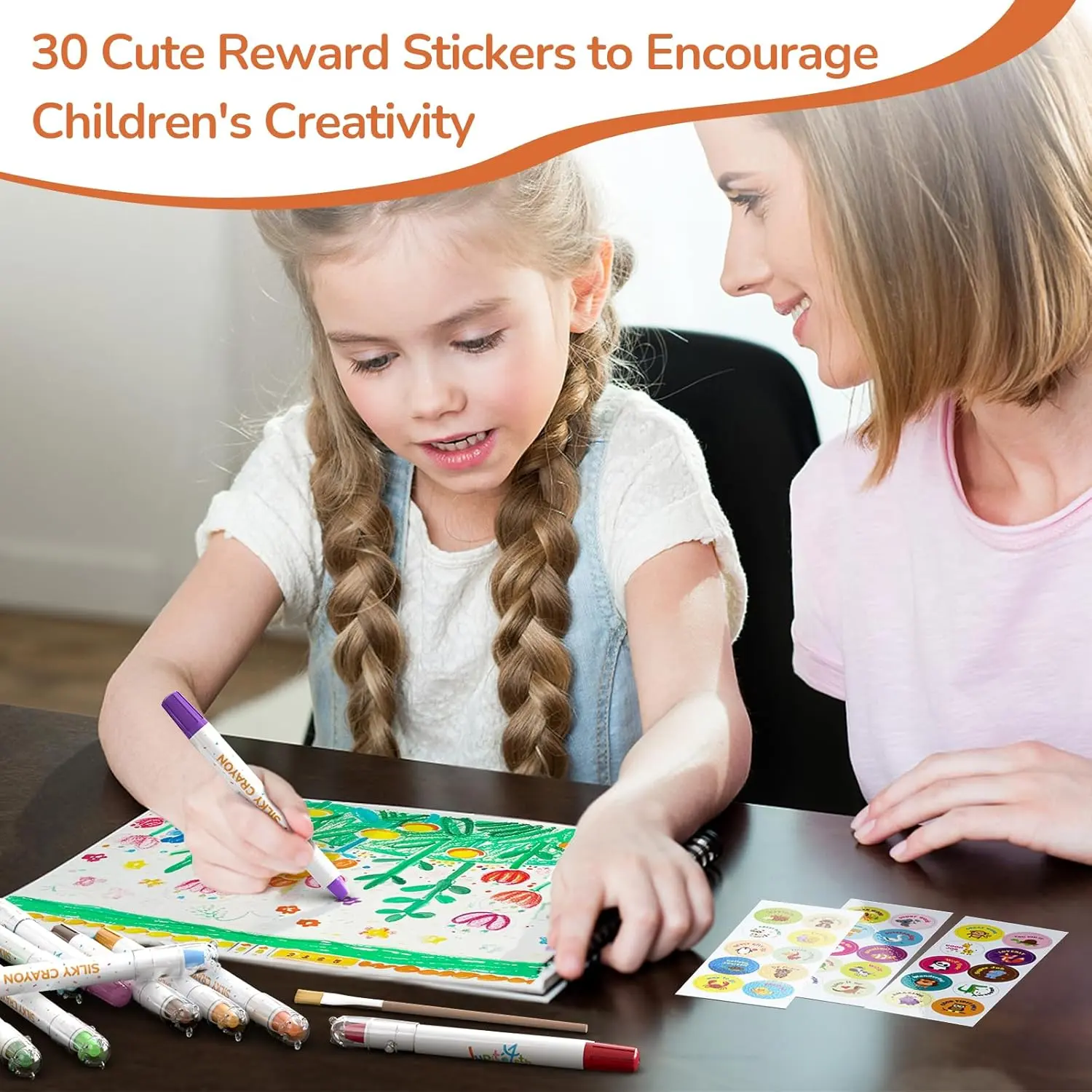 ·【12 / 24 / 36 Vibrant Colors】Our bear crayon box includes 12 / 24 / 36 bright colors jumbo toddler crayons, 3 sheets of stickers and 1 Paint Brush. These brilliant colors help kids to learn about colors, cultivate kid's imagination and stimulate kid's creativity, perfect for their artistic creations.