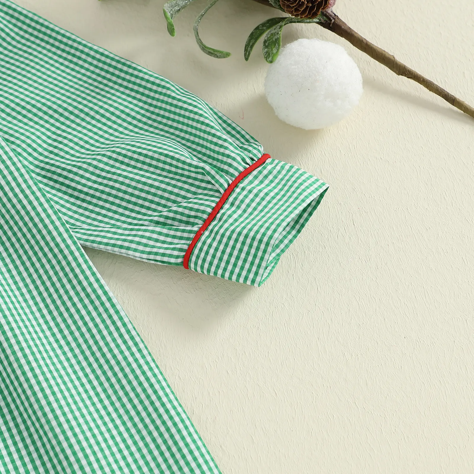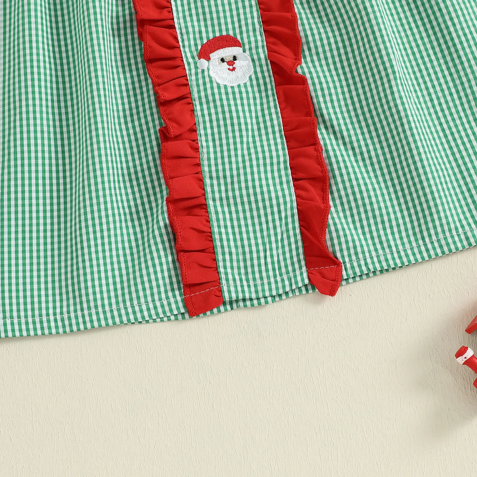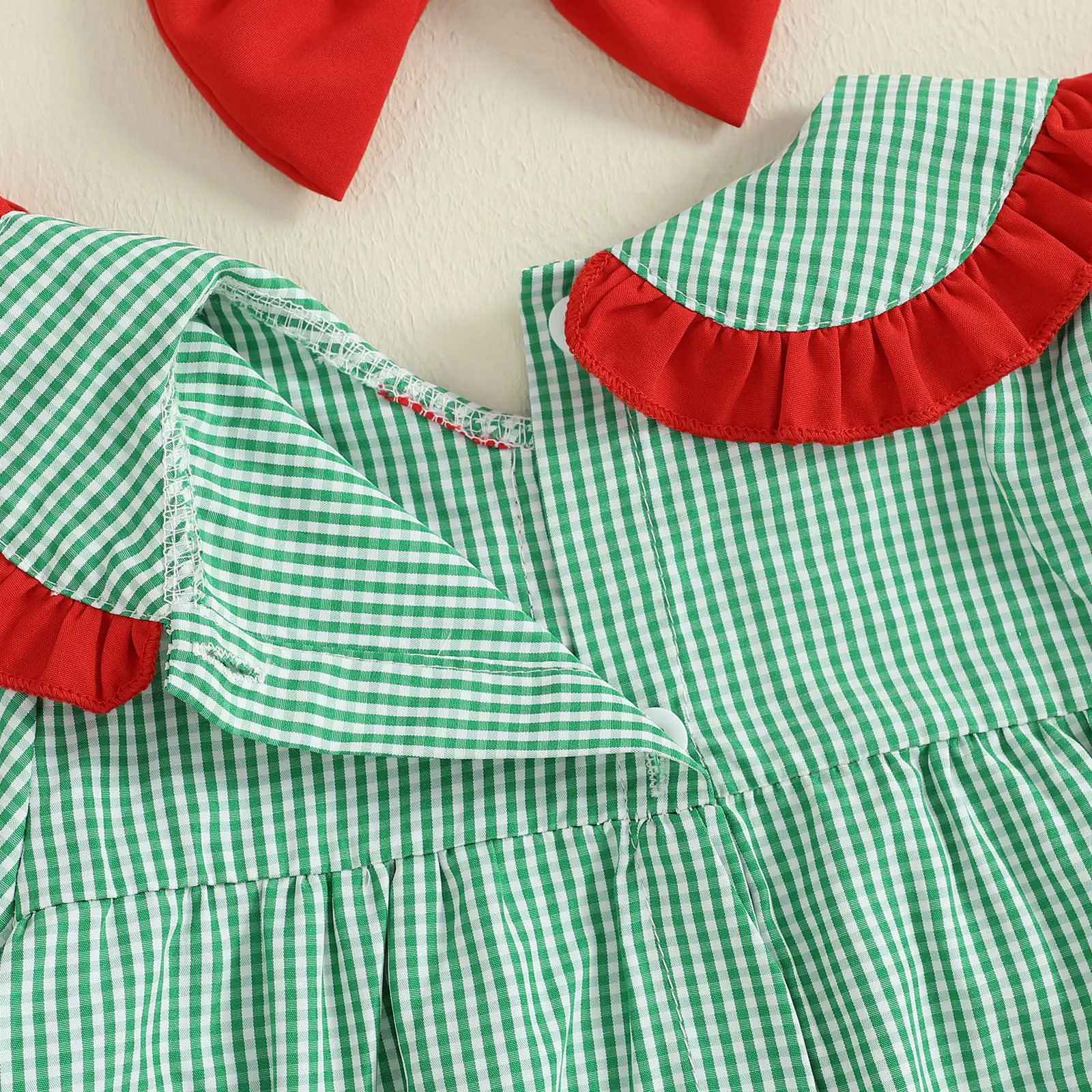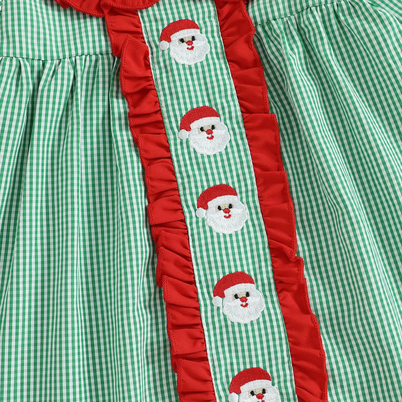 Toddler Baby Girls Plaid Dress Christmas Doll Collar Santa Claus Embroidery Long Sleeve Dress with Headband