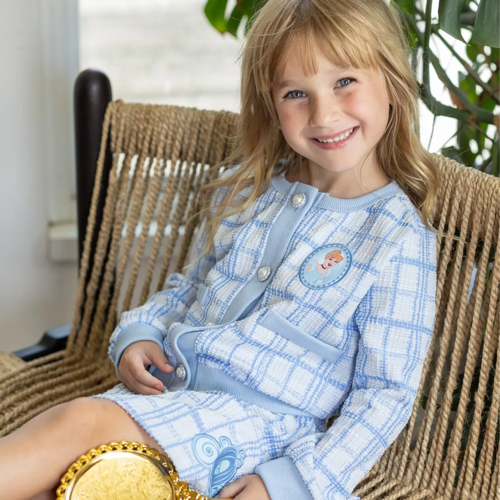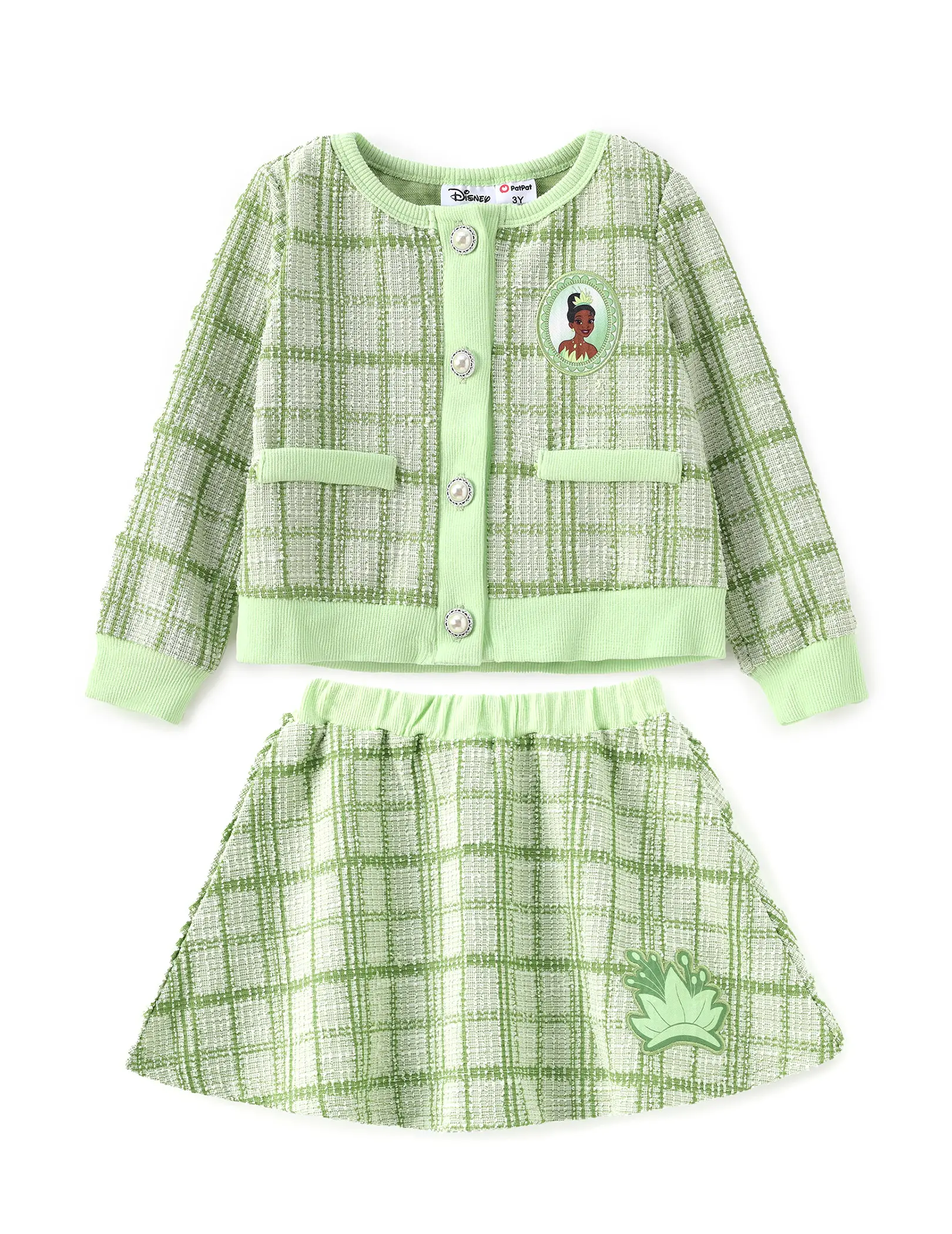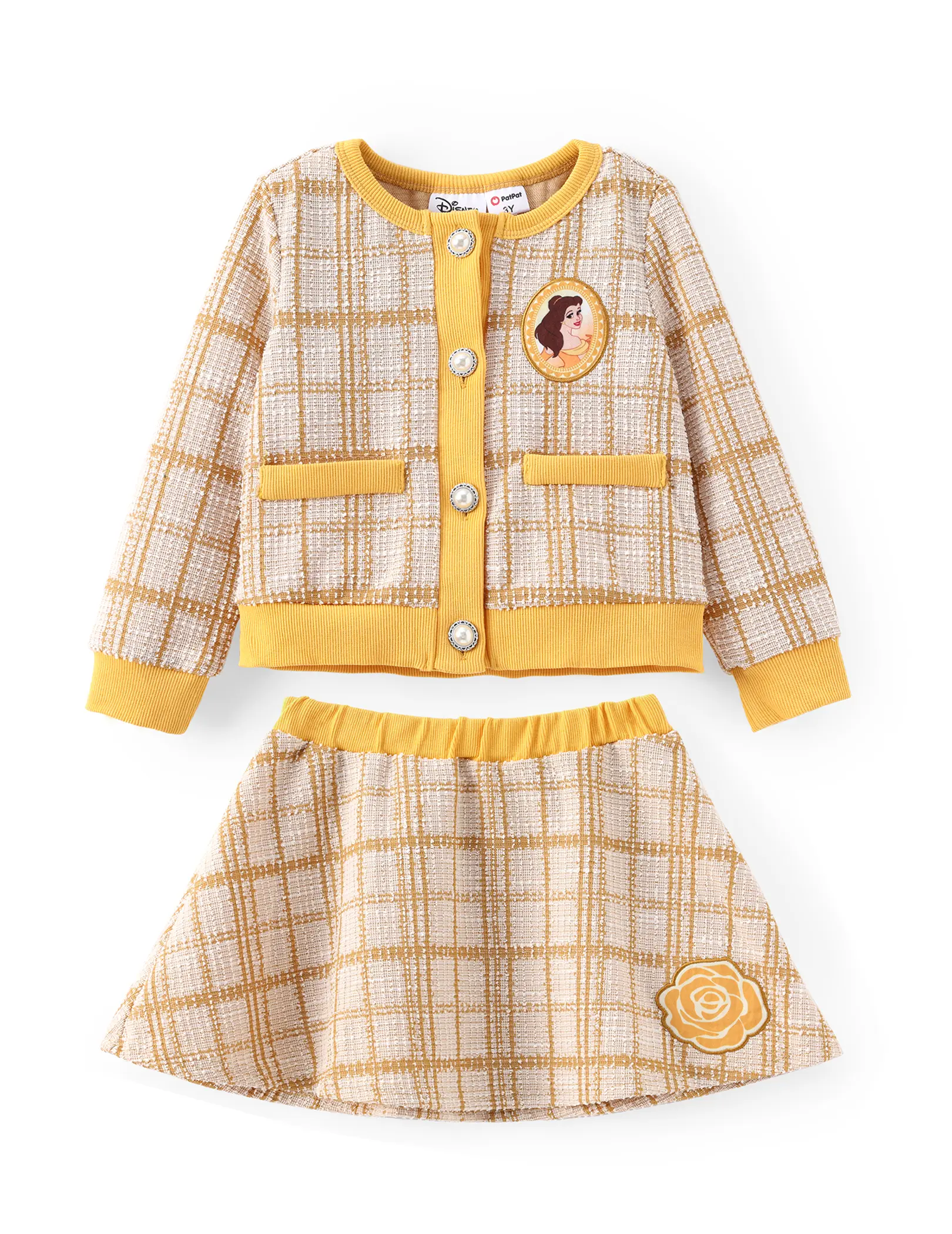 The pearl buttons on the knit top add a touch of elegance, while the tweed skirt brings a classic charm. This two-piece set is ideal for various occasions. It's suitable for both casual outings and special events. Let your child enjoy the joy of dressing up as their favorite characters, making every day a fun adventure.