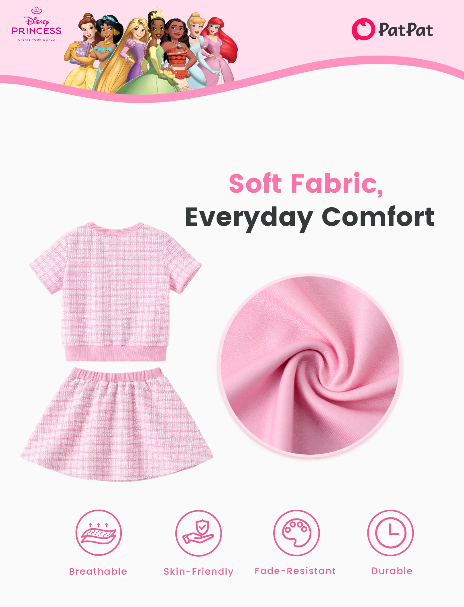 The outfit is so sweet and cute. Has great quality feel. I just love this look it’s like a Channel outfits lol but princess for our little girls. I’m happy with this purchase