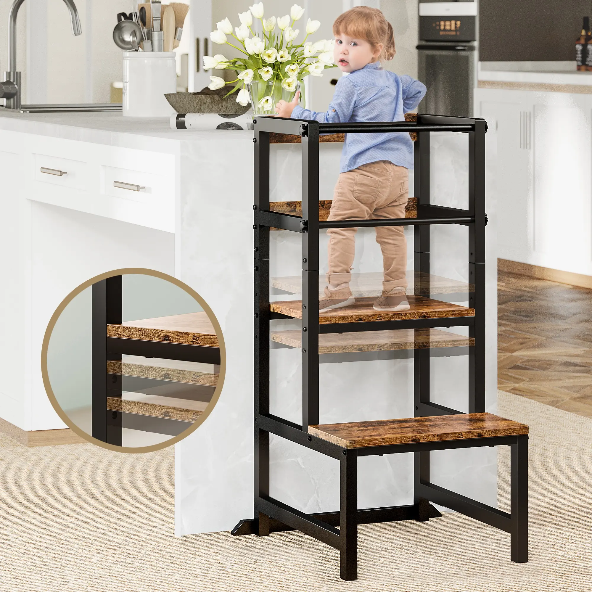 I love the stepstool for my granddaughter! It brings her right up to the counter height, where she can help do all the things! She still needs direct supervision when she stands in it because she is just over a year old. The pieces are sturdy and it’s convenient to keep in a corner until we use it.
