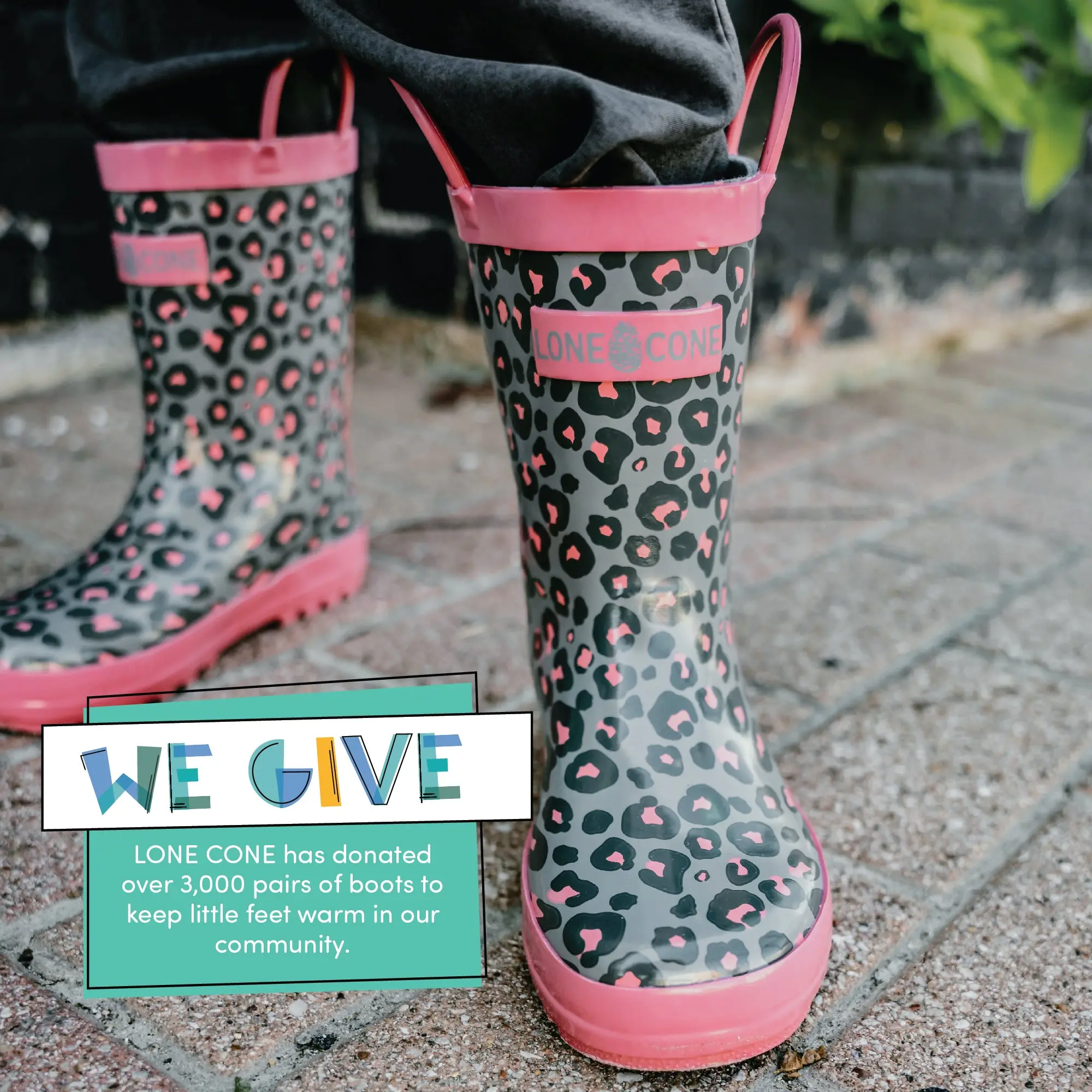 Created by a mother of three, Lone Cone Elementary Collection Rain Boots are designed to keep up with active children. That's why, in addition to being delightfully cute, they are easy to wear and easy to clean. A classic slip-on style, built-in handles, and easy-to-match color palette promotes independence by making it easier for young children to outfit themselves. Available in toddler and youth sizes 4T to 4.