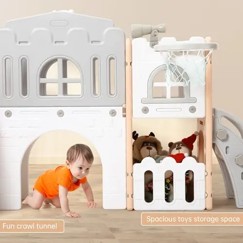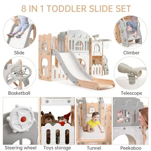 ·Indoor & Outdoor Use :This 8 in-1 slide designed for toddlers aged 1-3 is simple to assemble and easy to move, making it ideal for both indoor and outdoor play. Its space-saving size fits perfectly in kids’ playrooms, daycares, backyards, and even living rooms.