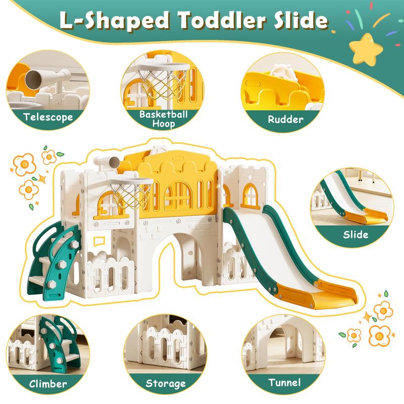 Package List: Slide, basketball, basketball hoop, user manual, telescope, rudder.
