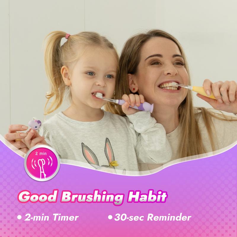 ·Smart Timer for Healthy Habits: 2-minute timer with 30-second pulses encourages kids to brush the right way every time.