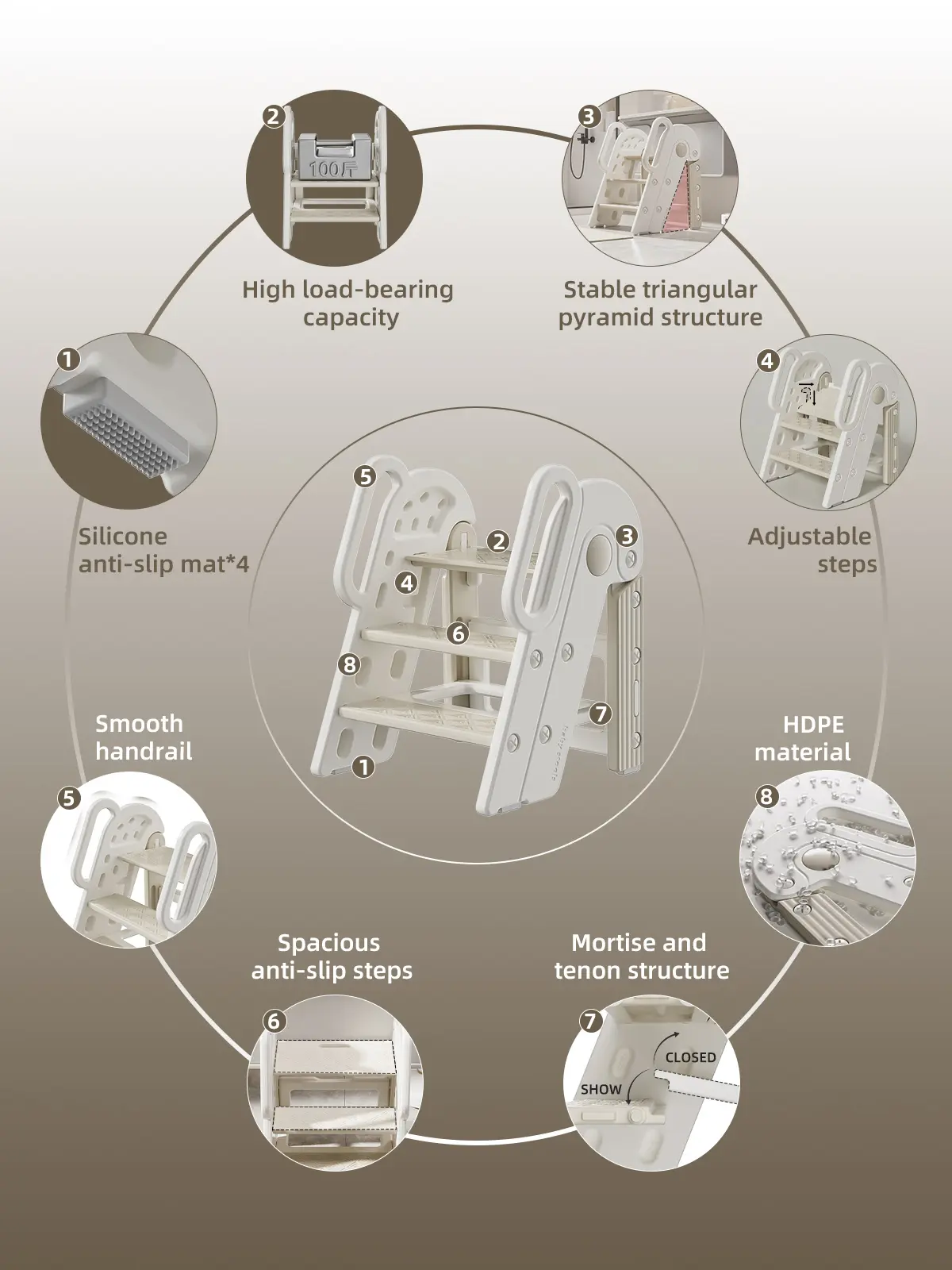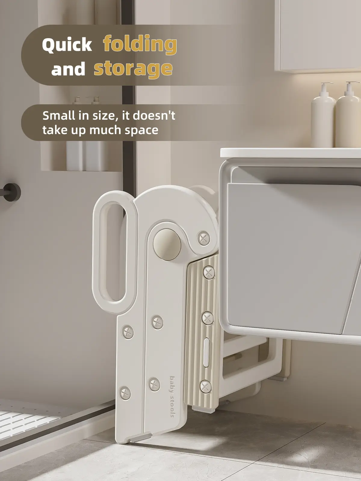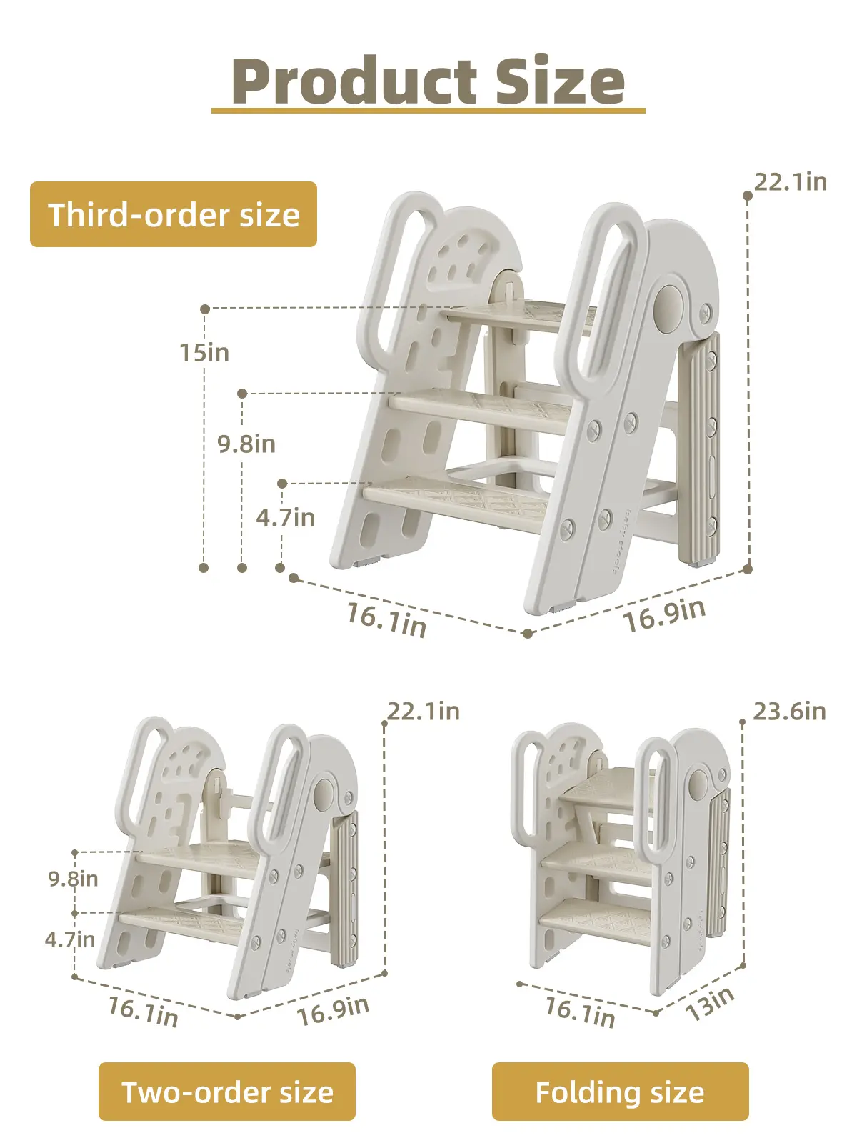 Toddler Step Stool for Bathroom Sink,Adjustable 3 Step Stop for Kids with Handles,Toilet Stool Potty Training,Foldable Step Stool for Bedroom Kitchen Counter,Plastic Ladder for Toddlers Beige