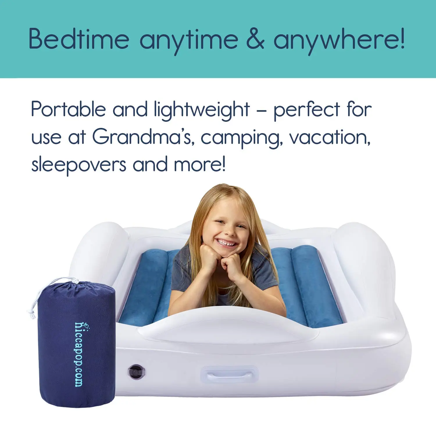 TRANSITIONAL BED - Kids cannot sleep in adult beds before they are 24 months old, yet most outgrow a crib at 18 months. So what do you do during those awkward 6 months? The hiccapop kids air mattress is the perfect solution for those “tween times” that every parent dreads. And when you’re done, use it for overnighters with friends, or better yet, your next little hiccapopper!
