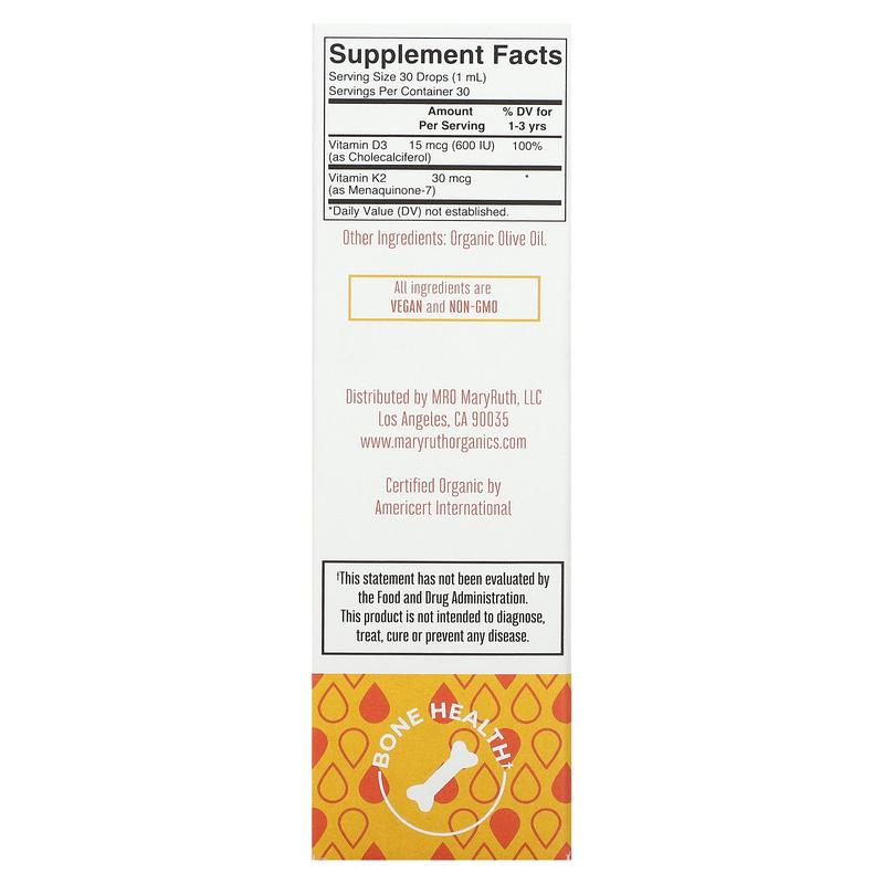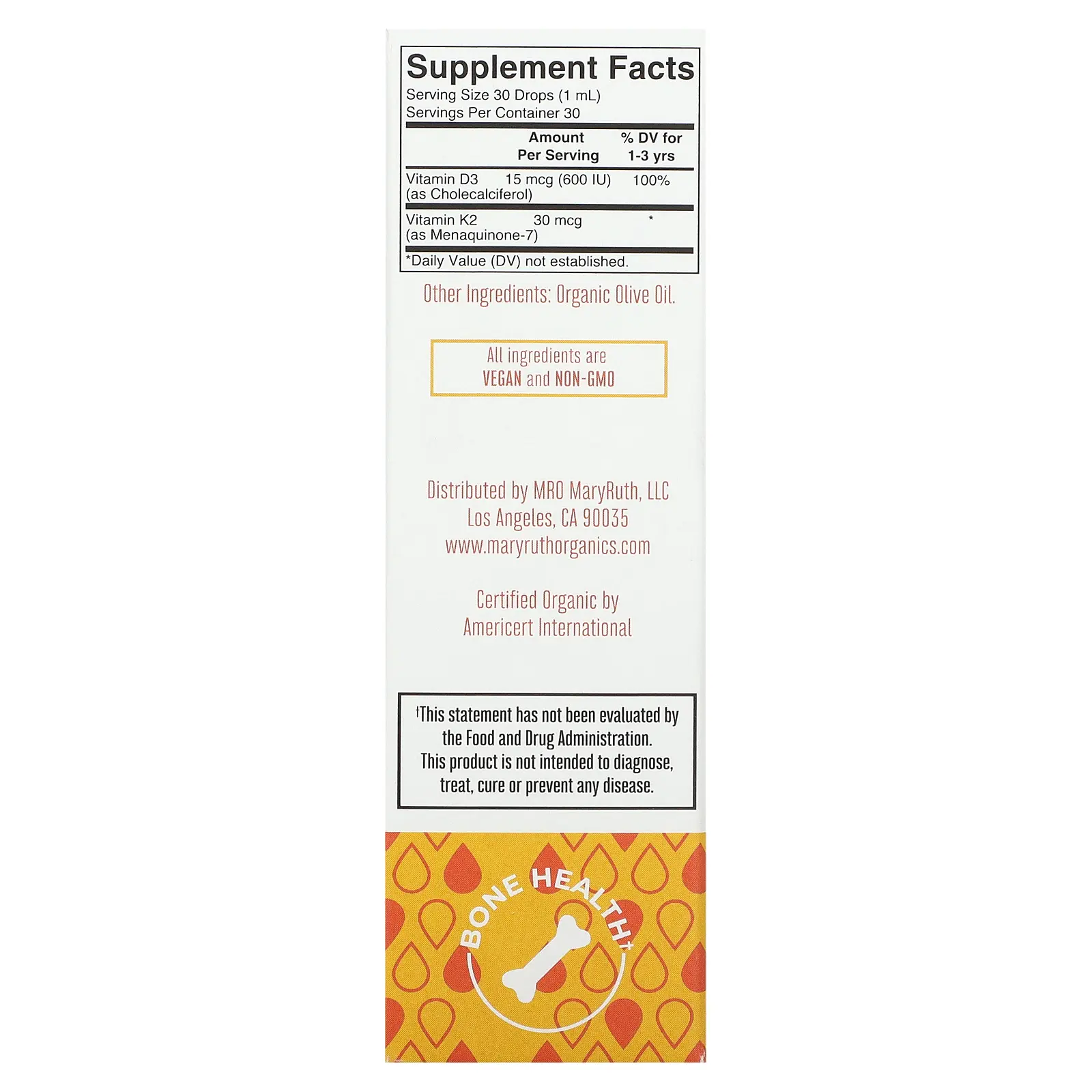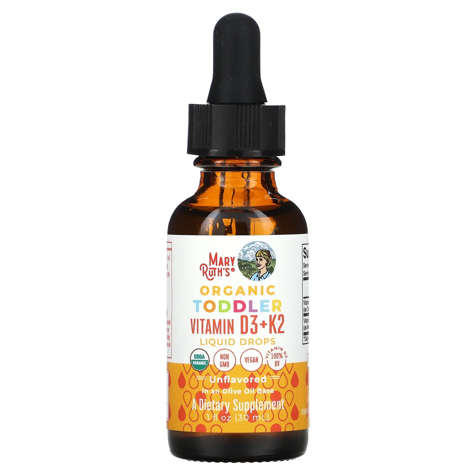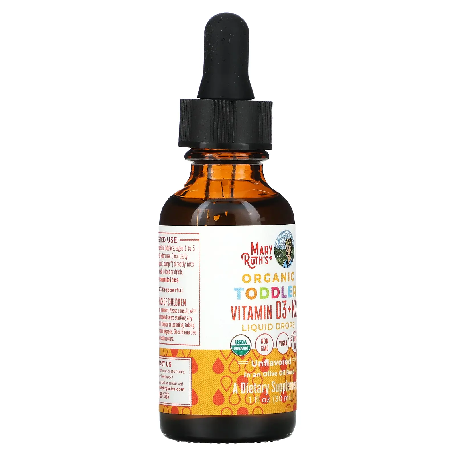 MaryRuth's Organic Toddler Vitamin D3 + K2 Liquid Drops, 1-3 Years, Unflavored, 1 fl oz (30 ml)
