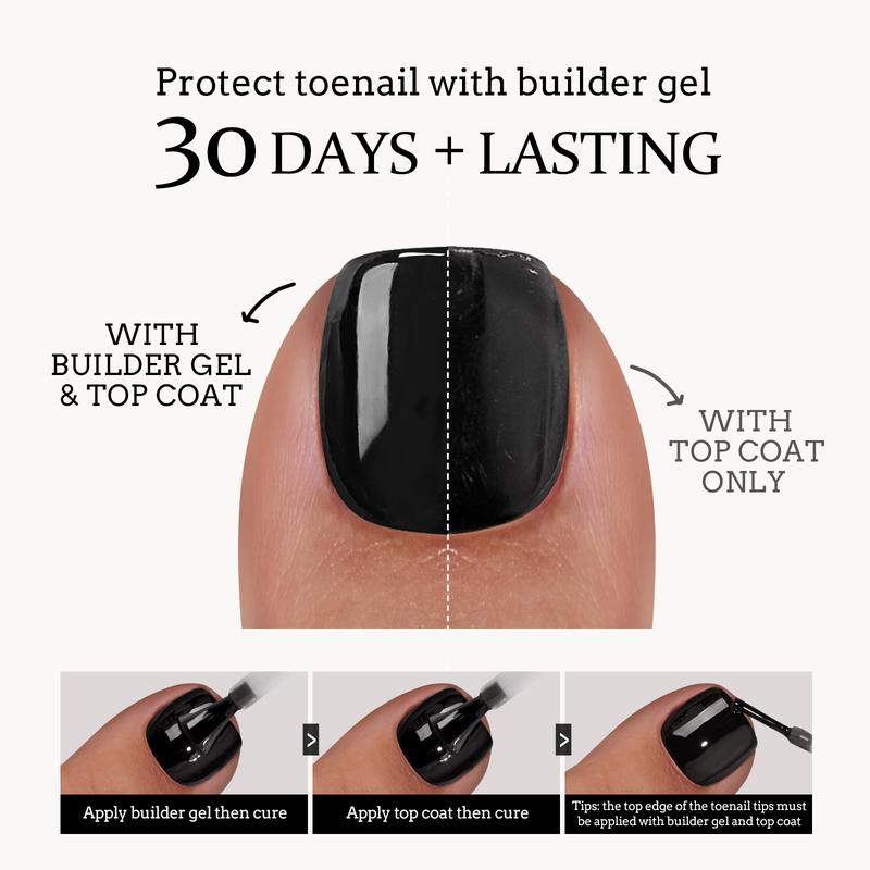 ·6 SIZES FOR SHORT THUMB TOENAILS: Only 160pcs toe nail tips are included. Upgraded 6 sizes for short thumb toenails, any length and width toenail beds can be found the right size! Just stick them on your toenails with gel glue then apply one layer of builder gel and one layer of top coat and done!