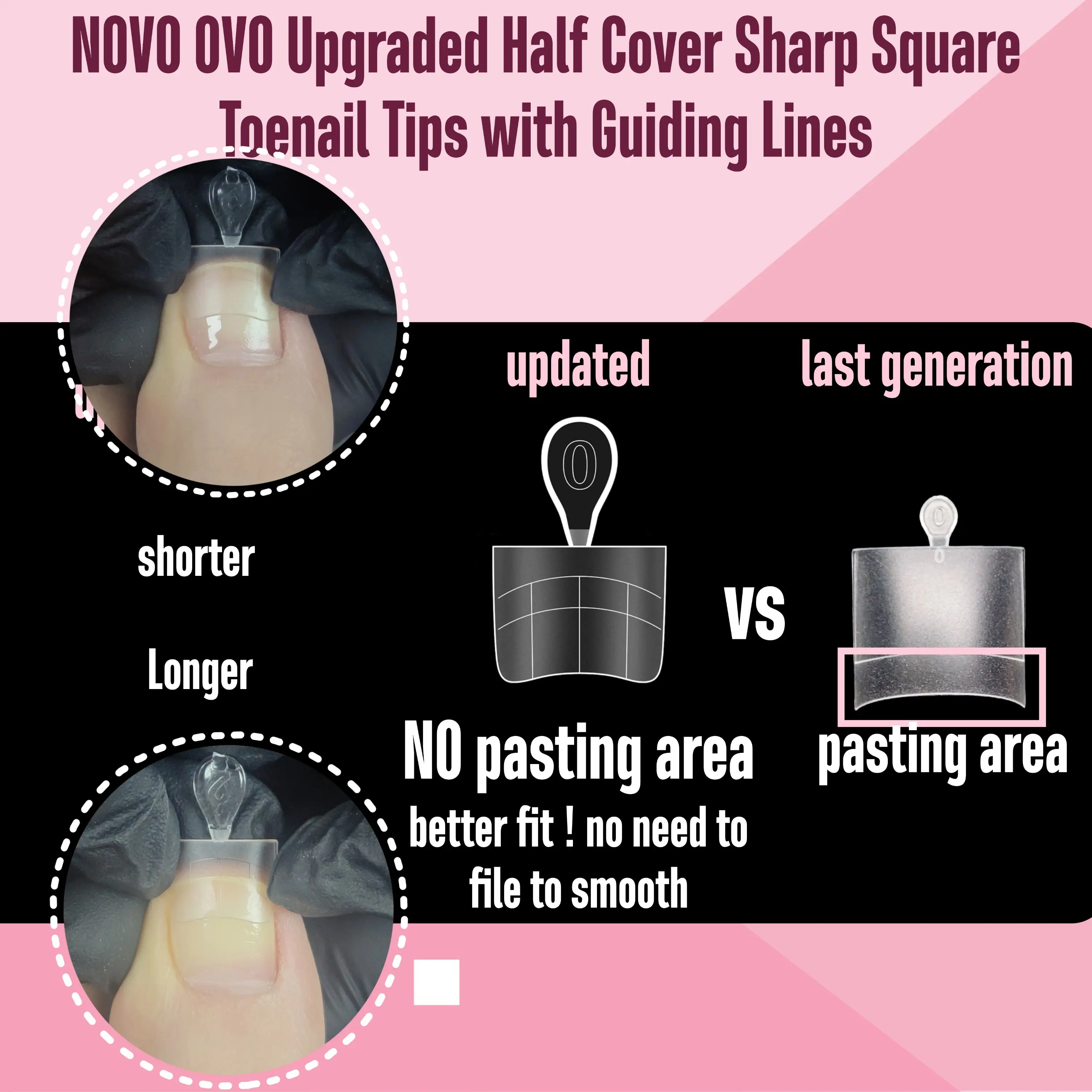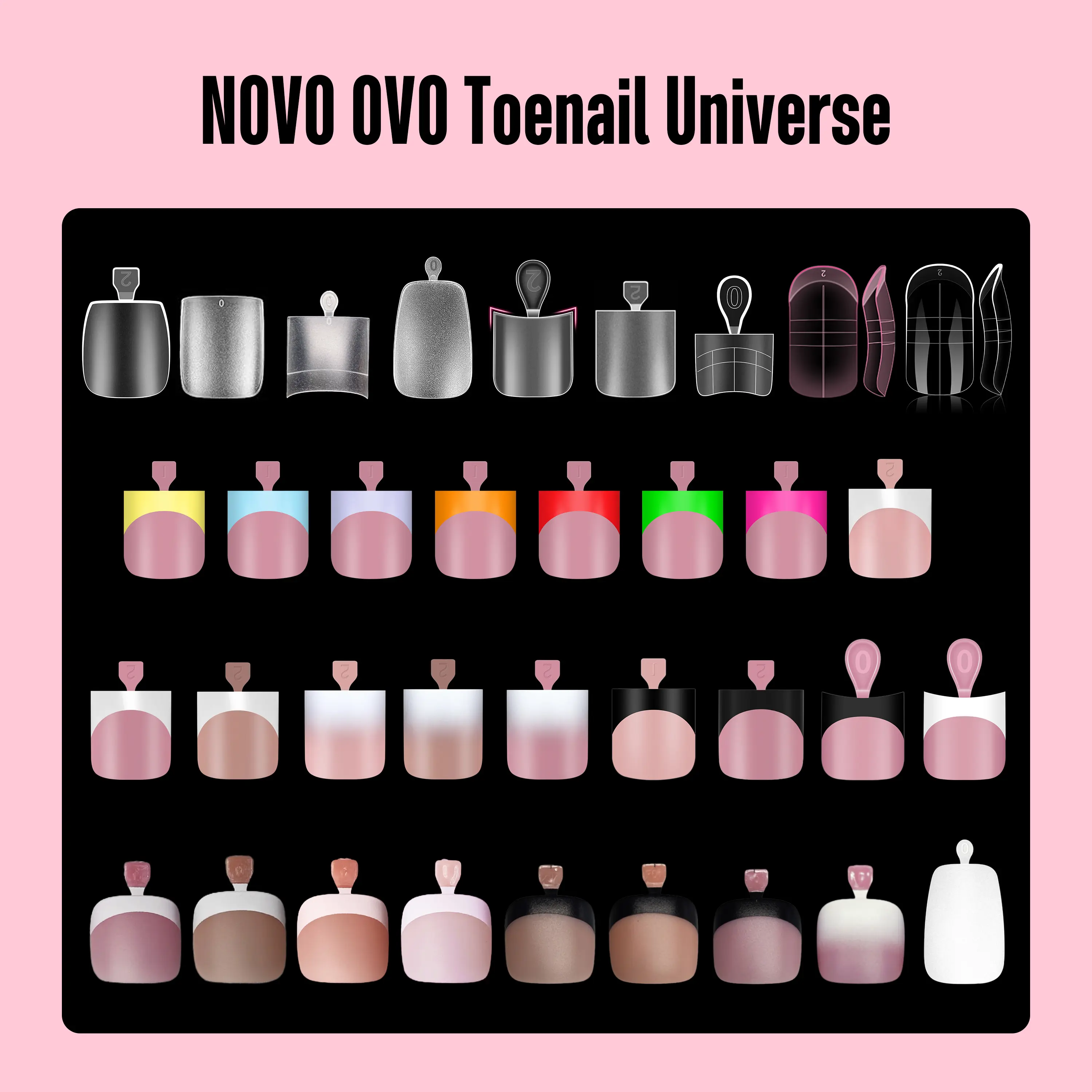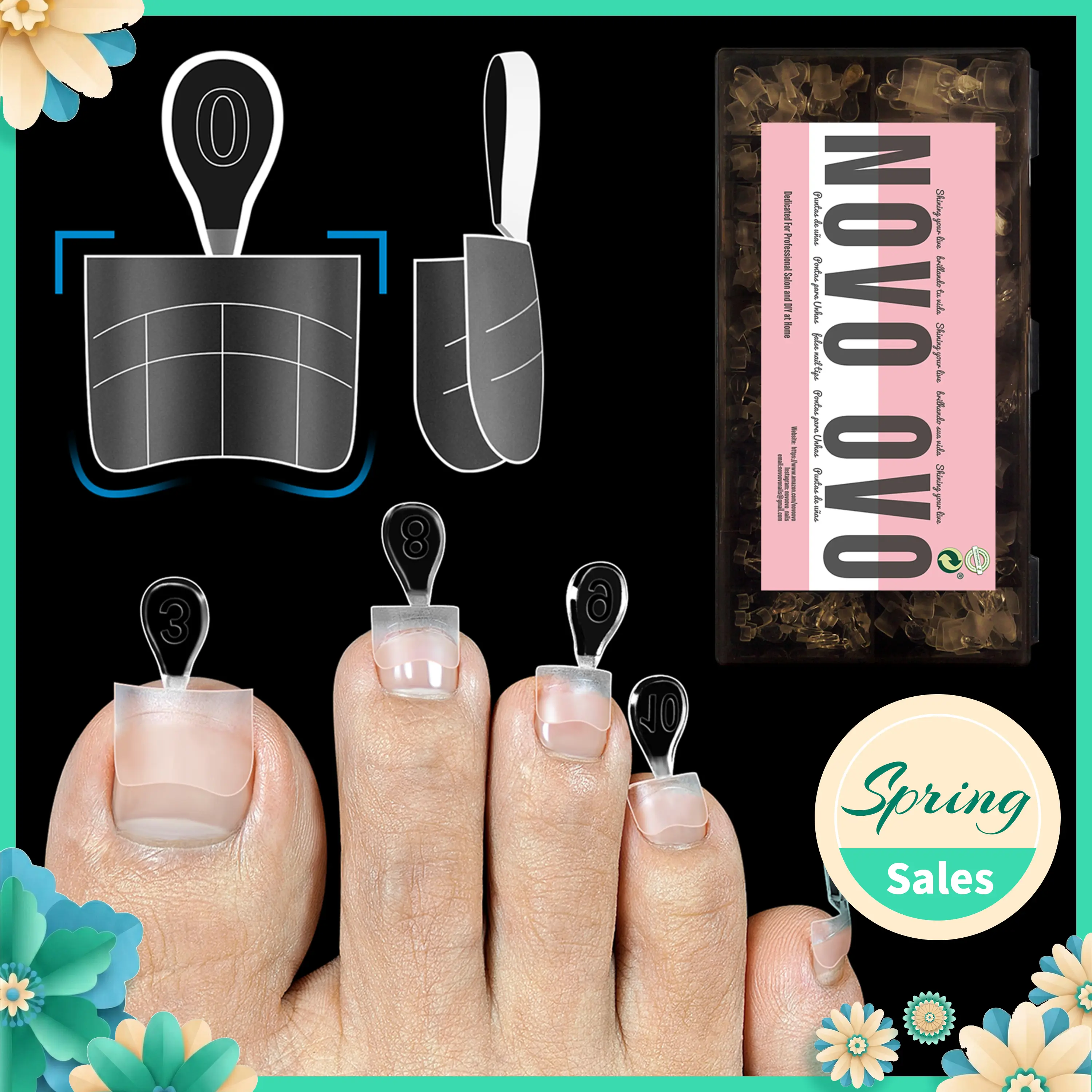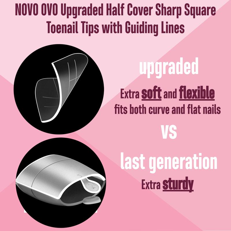 ·IDEAL FOR SALON AND DIY PEDICURES: Our toe nail tips offer a base for comprehensive application, they can be easily pressed, trimmed, and painted, compatible with nail polish, dip powder, poly gel, and acrylic powder, enabling you to achieve salon-quality pedicures. From nail tips to dual forms, half cover to full coverage, from short length to medium, long, XL, NOVO OVO has the perfect option for you.