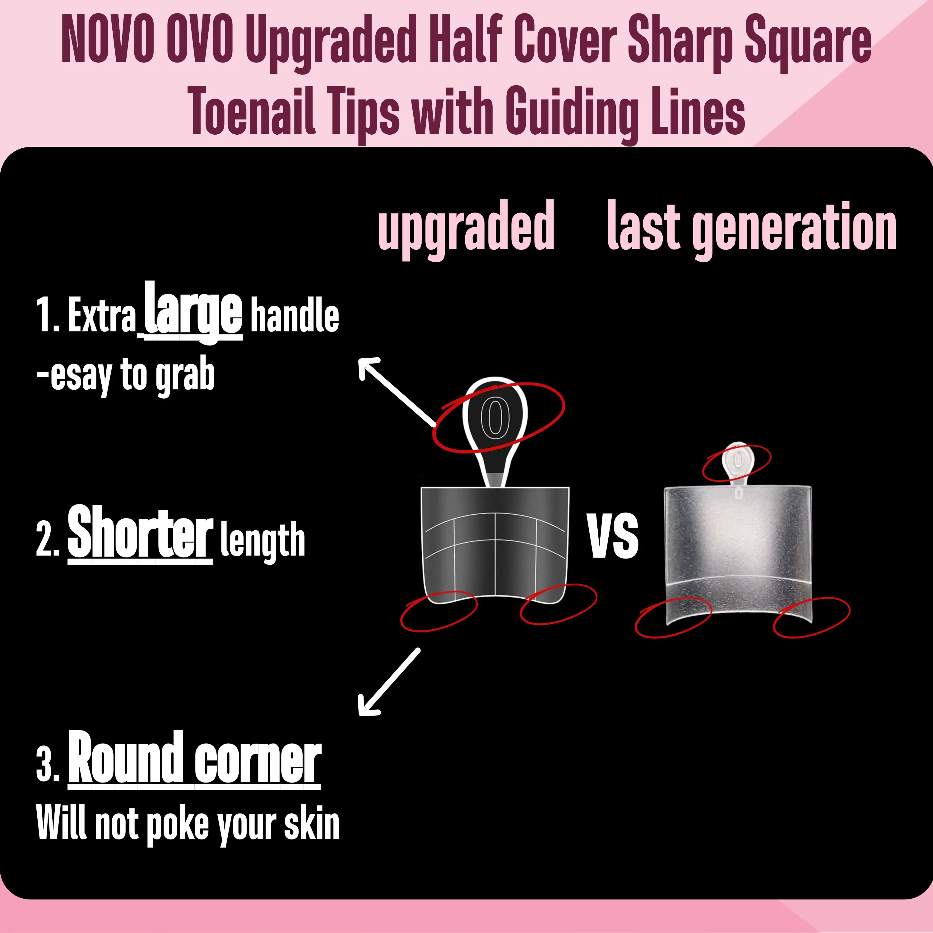 ·WORLD'S FIRST SOFT GEL TOE NAIL TIPS WITH GUIDING LINE: Responding to the requests of nail artists worldwide, we've upgraded our original sturdy half cover toe nail tips into soft and flexible versions featuring an auxiliary guiding line. This innovative design enhances convenience and precision in your nail care routine, allowing for a seamless application experience.