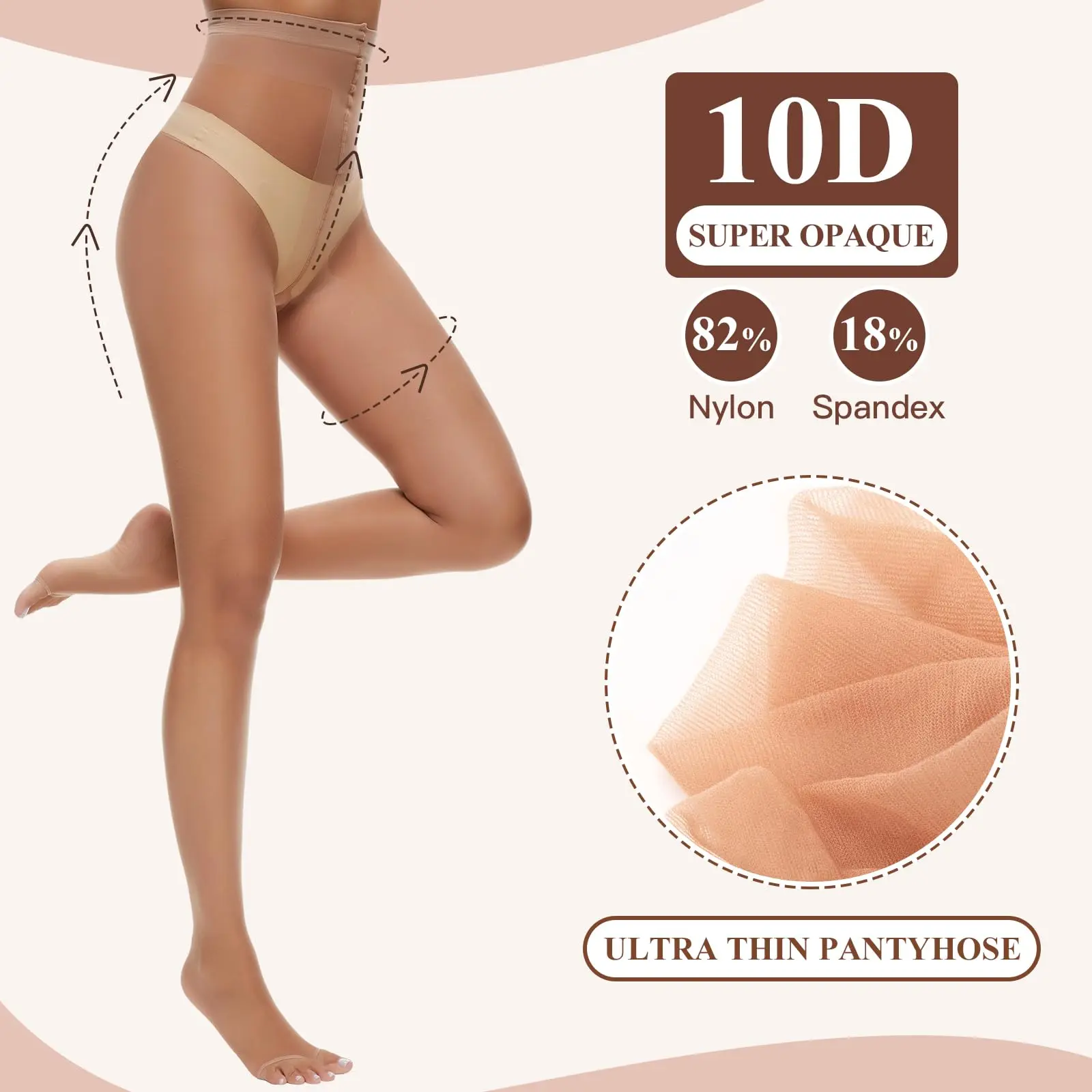 Super soft and comfortable toeless pantyhose! Smooth, lightweight feel with a natural, polished look. Perfect for open-toe shoes and sandals. Durable, no runs so far, and stays in place all day. Love them!