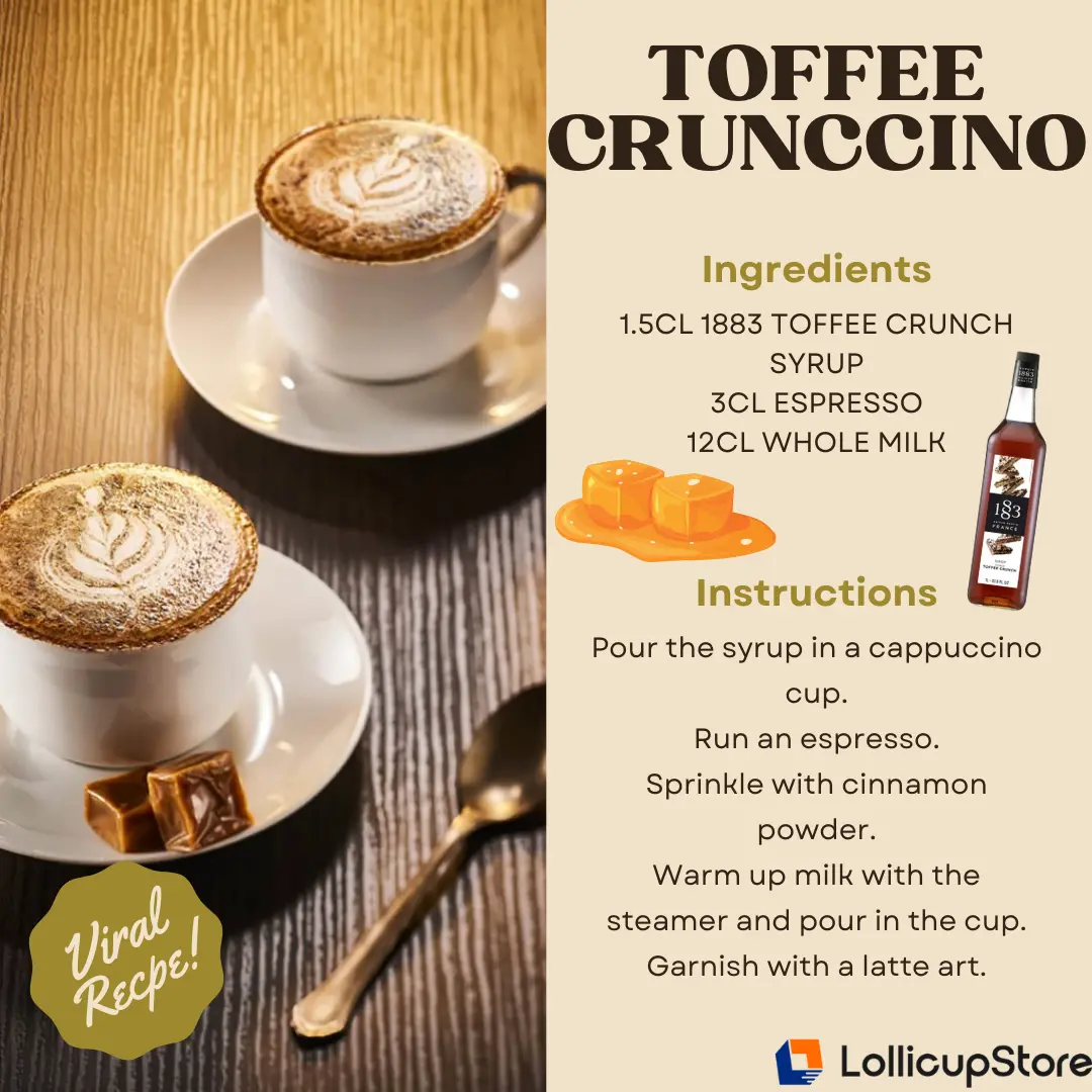 1883 Toffee Crunch Syrup features the classic candy taste of toffee with the delectable flavor of cocoa beans and caramel. Enjoy this syrup in sodas, coffee, hot cocoa, smoothies and more. Created and produced in the brand's all-natural birthplace in the French Alps, 1883 syrups are recognized for their authenticity, purity, and aromatic intensity.