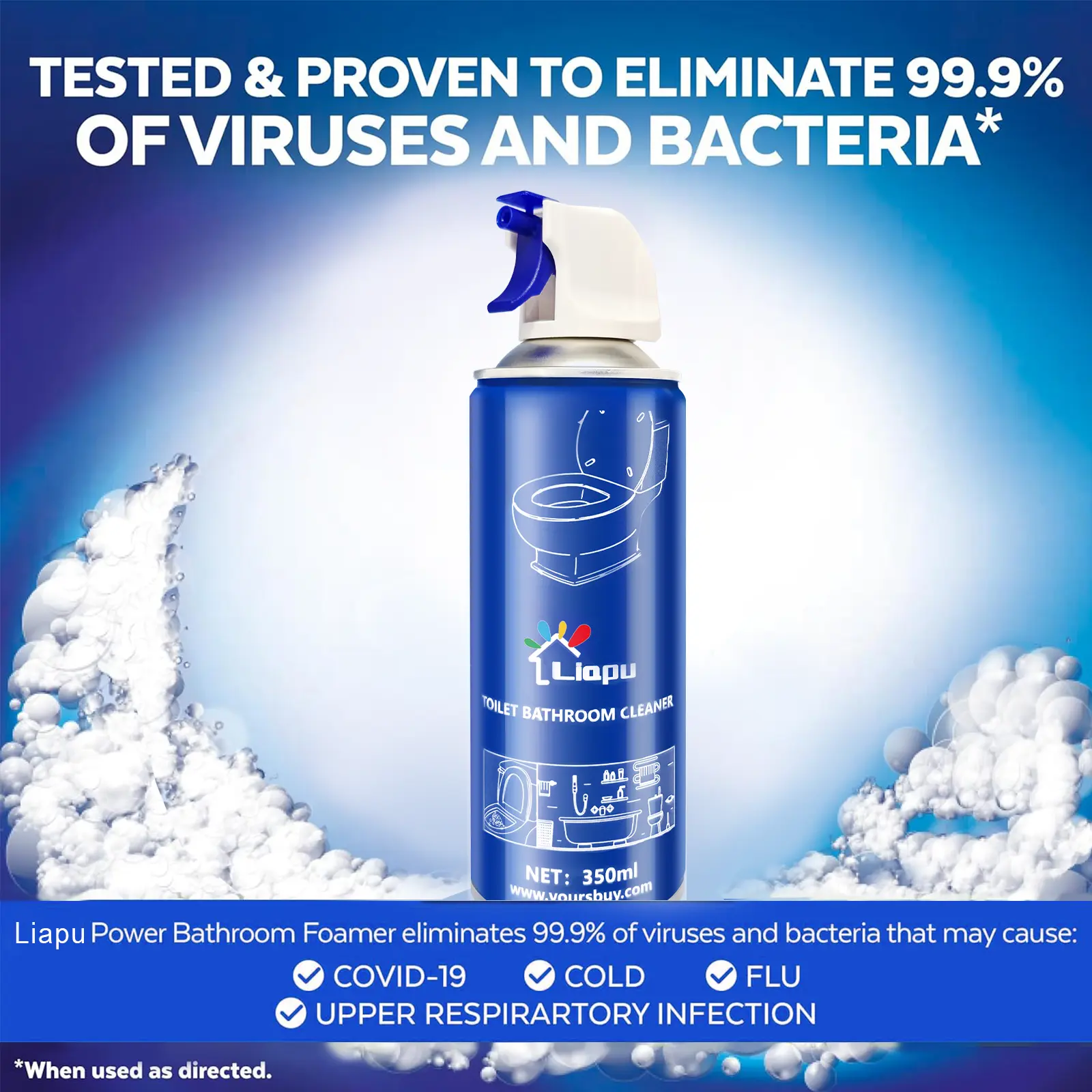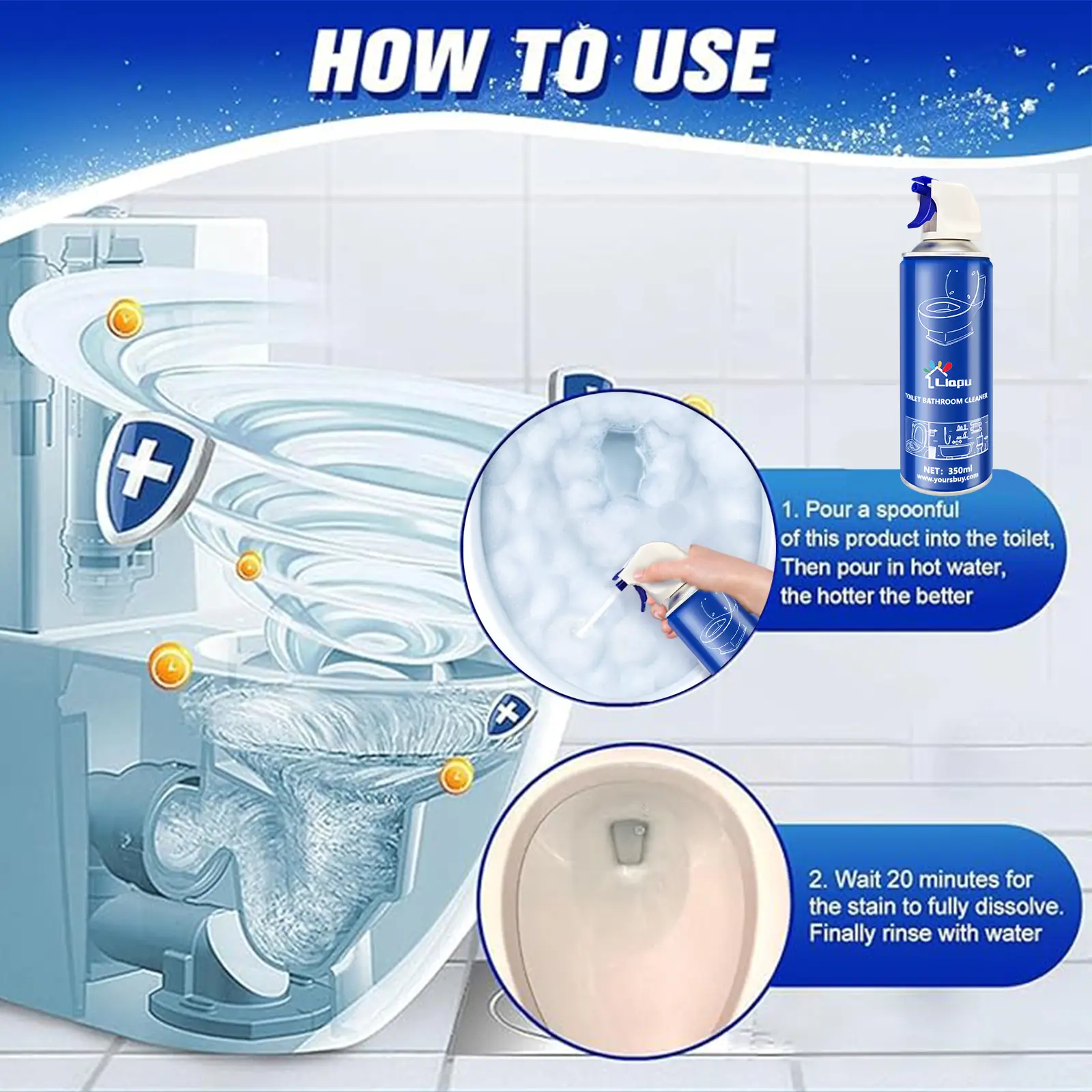 Liapu Toilet Bowl Cleaner eliminates 99.9% of bacteria, removes stains and dirt without double scrubbing, high-speed cleansing your bathroom in 30 seconds