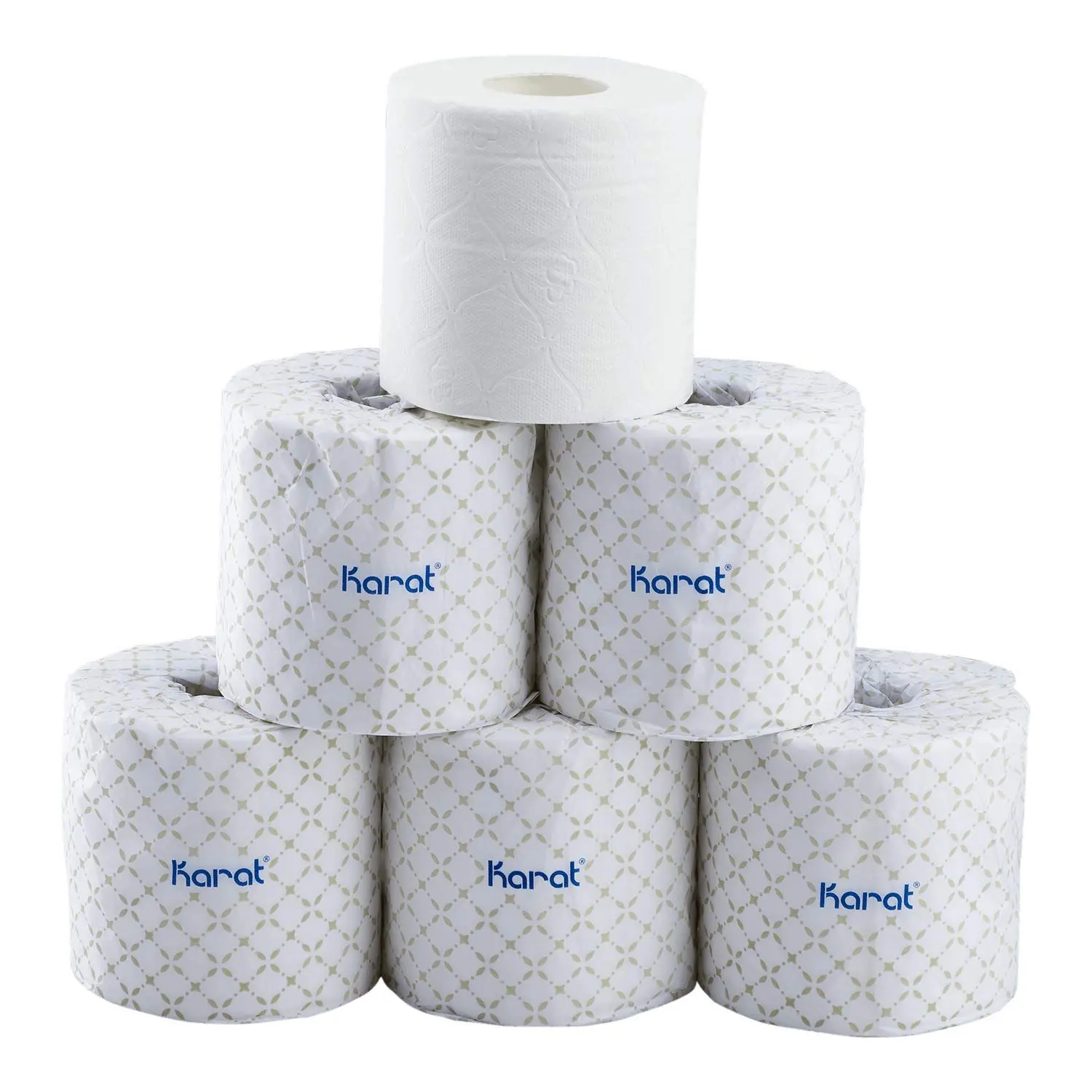 Karat toilet paper rolls are made from virgin paper and feature 500, 2-ply sheets per roll. This toilet paper is strong, yet soft, and is individually wrapped for sanitation and cleanliness. Custom printing is available for toilet paper wrapper.