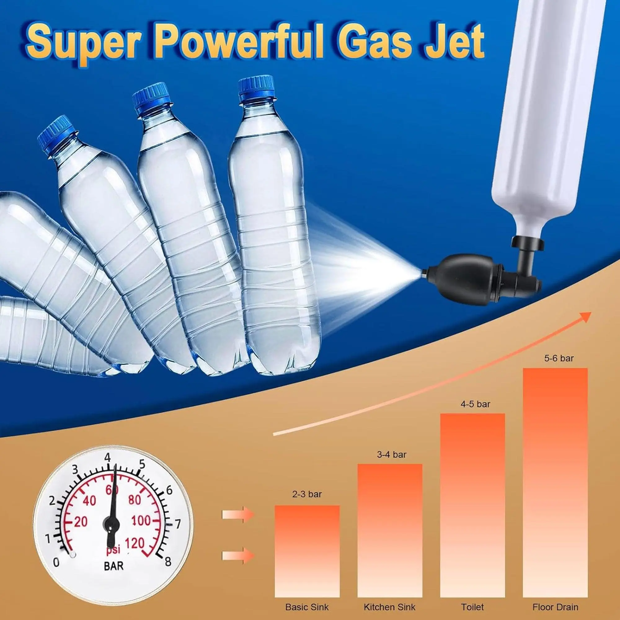Designed to use air pressure to blast away even the toughest of clogs in your drains