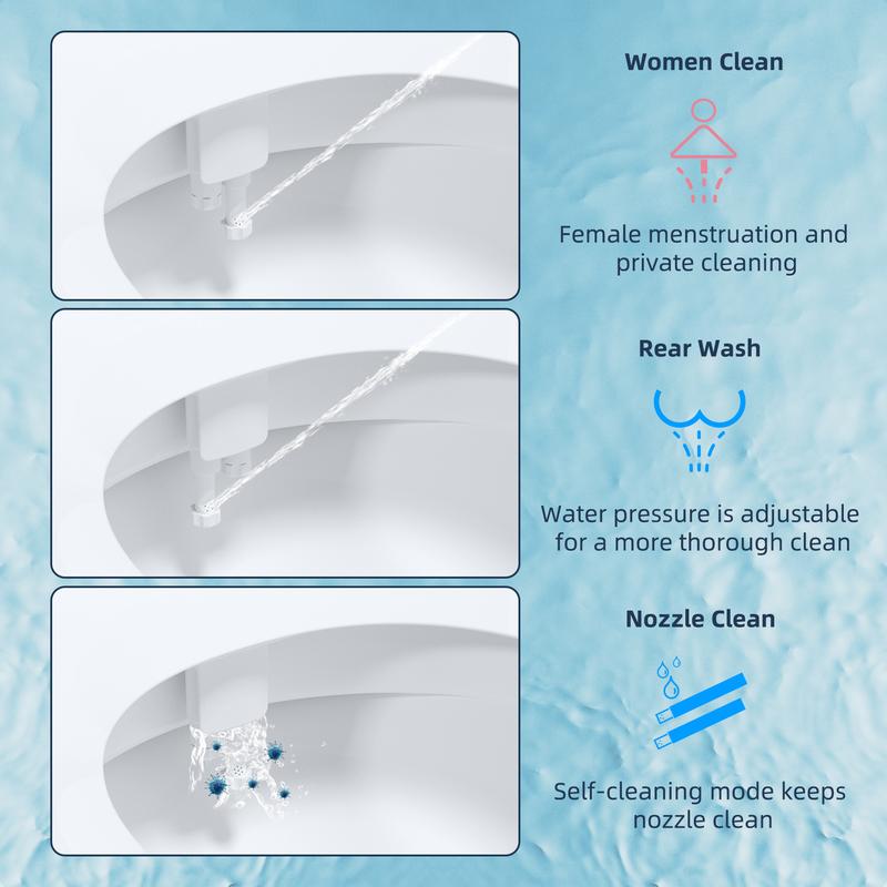 ·Dual Self Cleaning Nozzle: The dual nozzles offer both rear and front cleaning, providing added benefits for feminine hygiene. When not in use, the nozzles remain discreetly hidden. The installation of the bidet attachment requires a bathroom with a hot water valve. Please ensure that you connect the bidet to both hot and cold water pipes to access hot water.