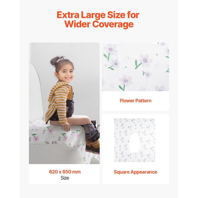 ·Ample Size Coverage: This disposable potty cover measures 24.4 x 25.6 inches, offering generous coverage for adults and kids to keep hands and legs away from dirty seat surface. The cute floral design makes potty time more enjoyable for children.