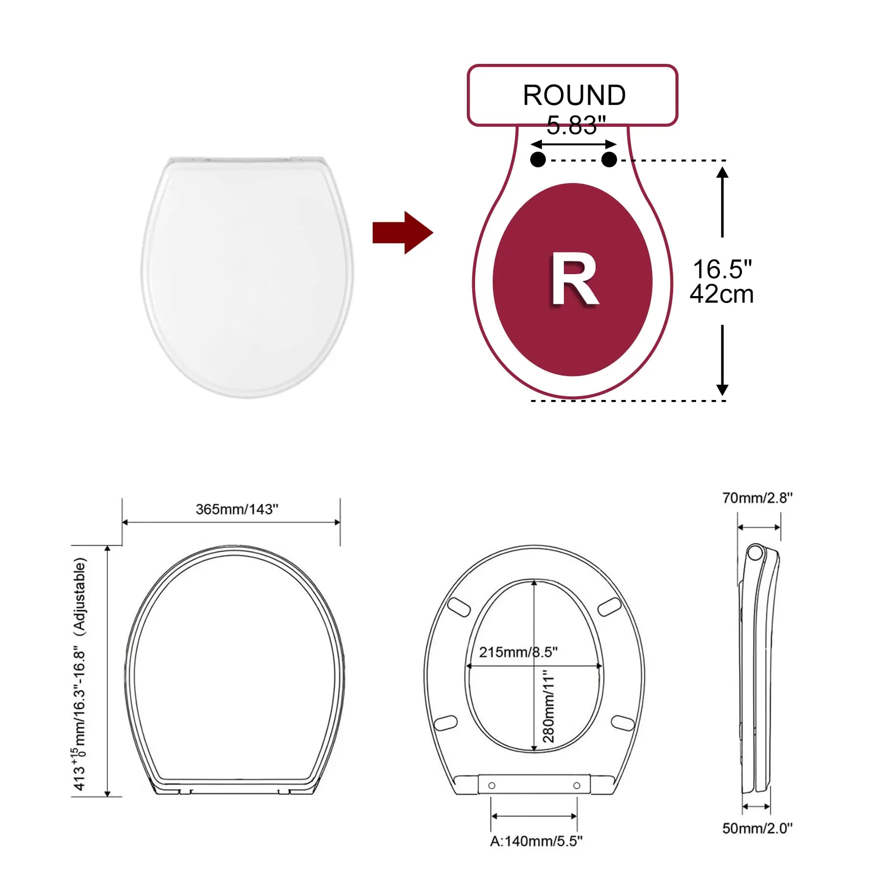 ·5.Fits Elongated Toilets: This elongated toilet seat work well with all brands of toilet such as fit for Kohler, American Standard, Toto, Crane, Elijer, Caroma, and so on. Please make sure to measure your toilet size before placing an order.