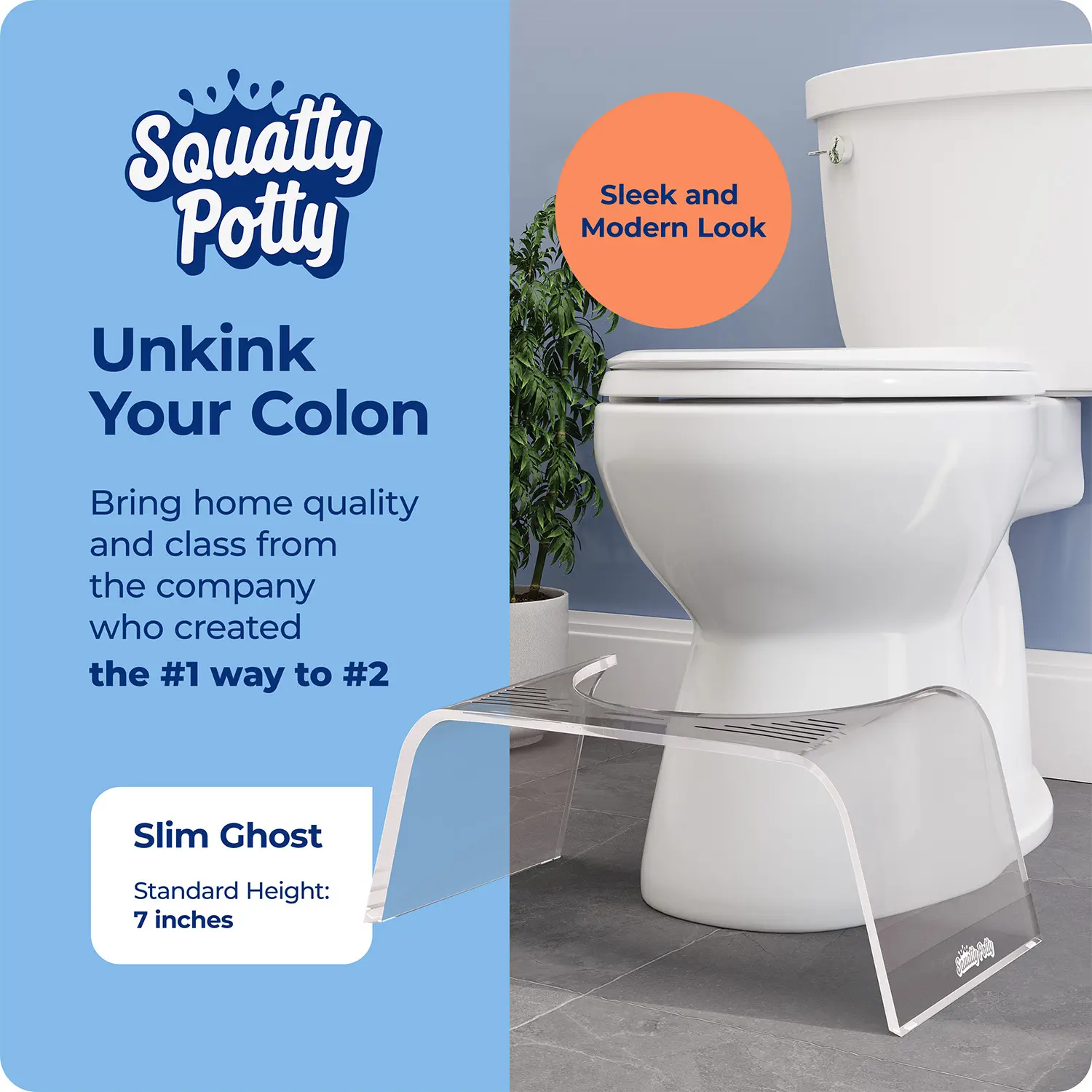 Just gotta go? We feel you. This Ghost toilet stool is ready to support your feet and legs while you poop. It repositions your body to make pooping easier. There are no nuts, bolts or difficult instructions involved since it is one piece. Just slide it under the toilet bowl, have a seat, position your feet, then go!