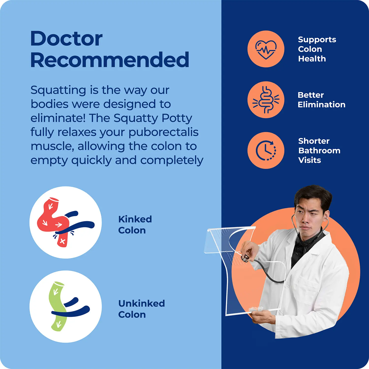Squatting is the way our bodies were supposed to eliminate. Squatty Potty stools turn the negative effects of western toilets into a way to poop better. It’s time to unkink your colon so you can relax that puborectalis muscle to empty quickly – and completely – with your very own toilet stool.