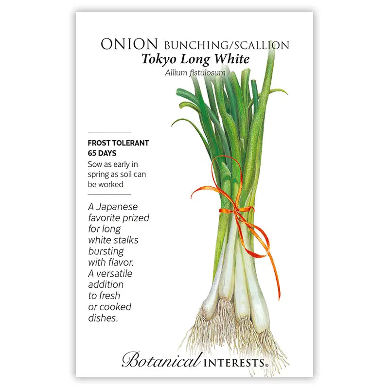 These Japanese scallions are long, slender, and mild. Slice these sweet onions and juicy, bluish-green tops into salads, soups, stews, and stir-fry dishes. Ideal for summer and fall harvests, heat-tolerant plants can be blanched in the garden or a container for 16"–18" long, white, leek-like stalks. Disease resistant to pink root and smut.