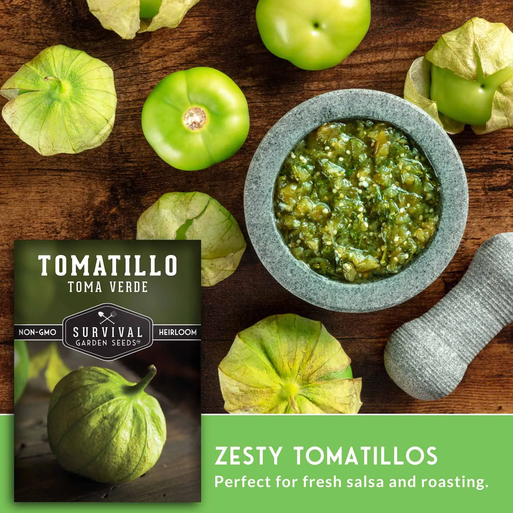 ·Zesty Tomatillos - Brightly flavored, tangy tomatillos taste tart when fresh, and sweeter when roasted. Pairs well with garlic, cilantro, and peppers for a spicy salsa verde!