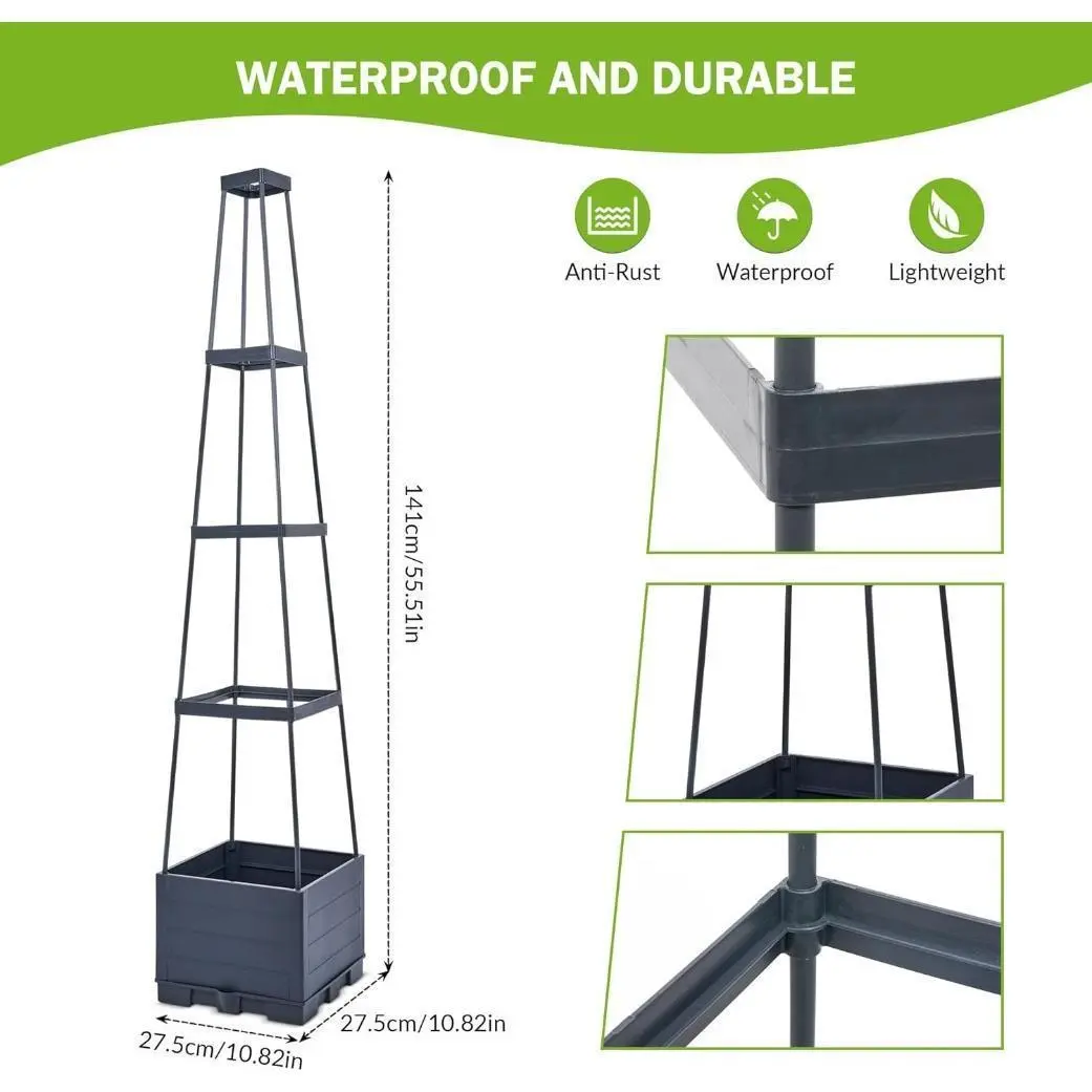 【Durable and Premium Materials】: Constructed from fade-proof, food-grade safe reinforced PP material, this planter box is built to withstand all weather conditions. The trellis frame, waterproof, promises durability and requires minimal maintenance. This planter is the perfect outdoor accessory to showcase your favorite plants with style