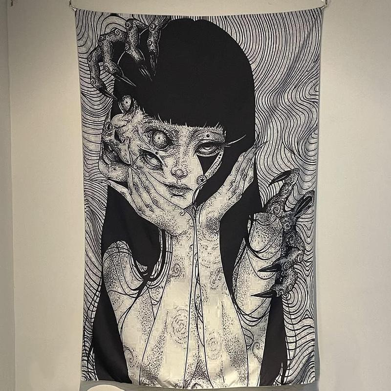 Horror Anime Tomie Girl Revenge Tapestry, Wall Hanging Dorm Party Lightweight Backdrop Decorations Home Decorations for Living Room Bedroom Decor(60 x 40 in) Cotton Decorative