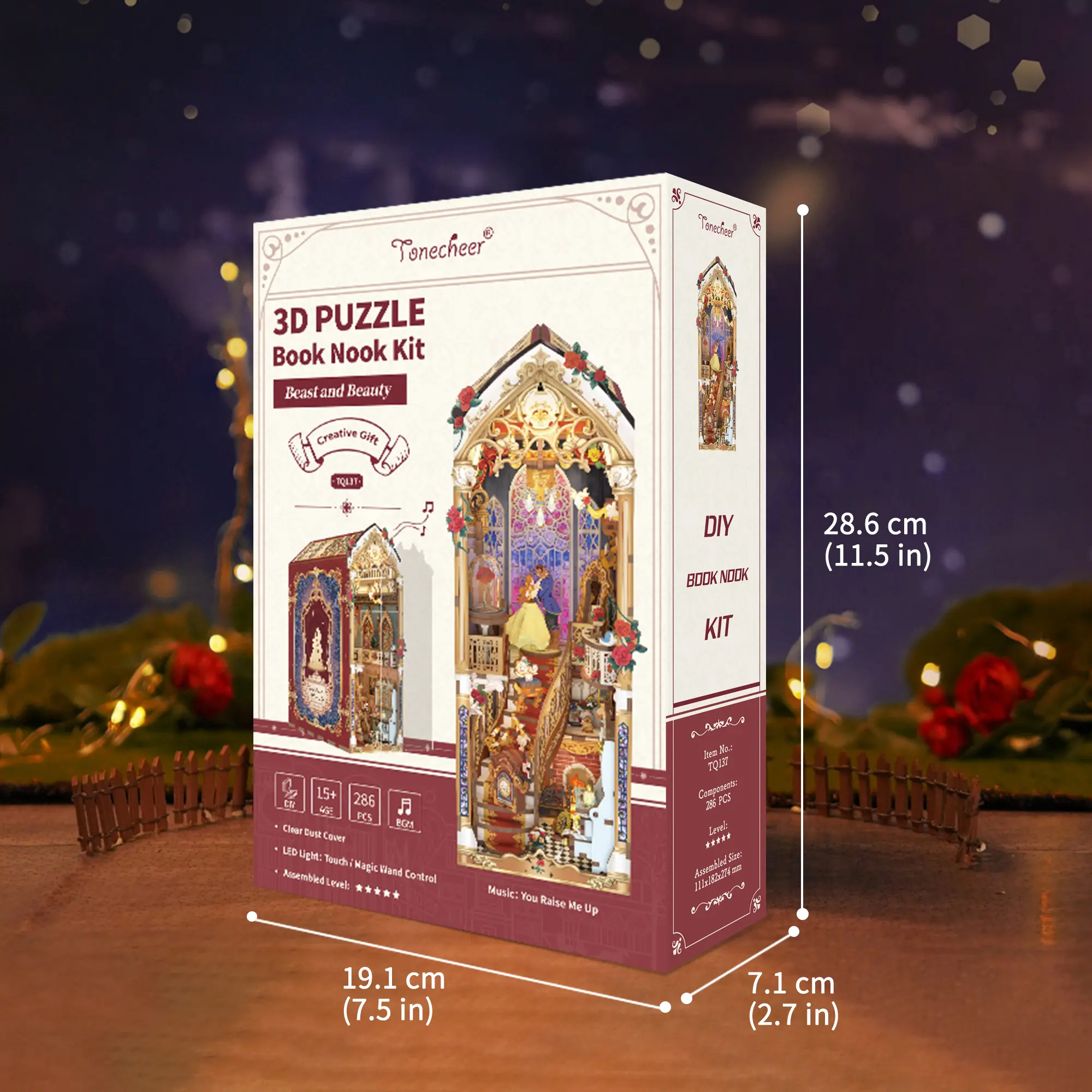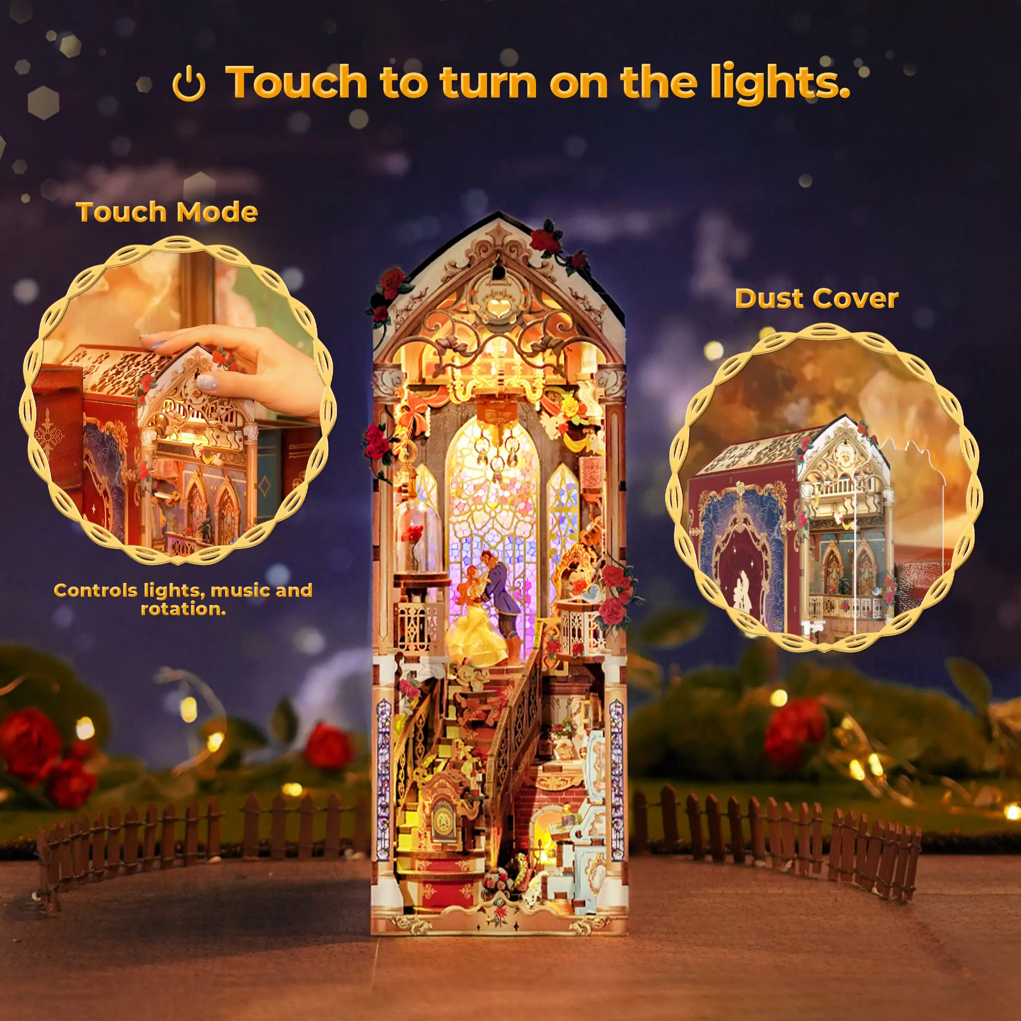 This is very cute but the sound doesn’t work after a few hours and the spinning belle and beast doesn’t work either
