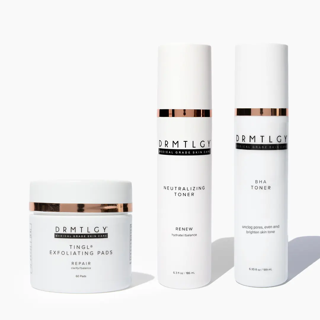 Not sure which toner is right for you? Our Toning Collection has you covered. TINGL® Exfoliating Pads help clear blemishes and smooth skin, Neutralizing Toner restores pH balance, and BHA Toner unclogs pores and evens skin tone, so you can find your perfect toner match.