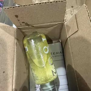 The package and product were both damaged, entire product is washed as all the liquid was licking:.