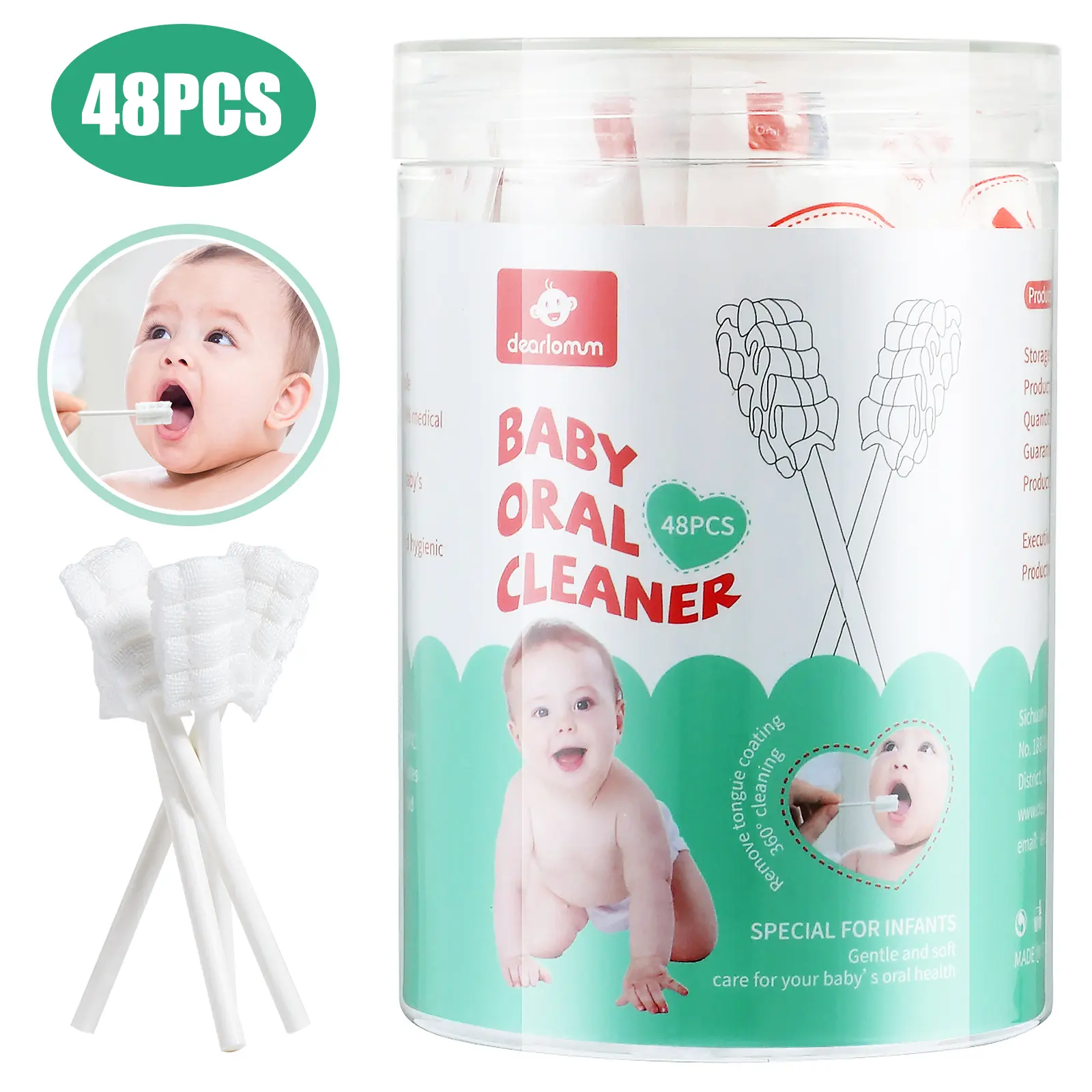 dearlomum Tongue Cleaner Newborn Toothbrush 48PCS Disposable Infant Toothbrush Clean Mouth Gauze Gum Cleaner Oral Cleaning Stick Dental Care Toothpaste Alternative for Baby Oral Health