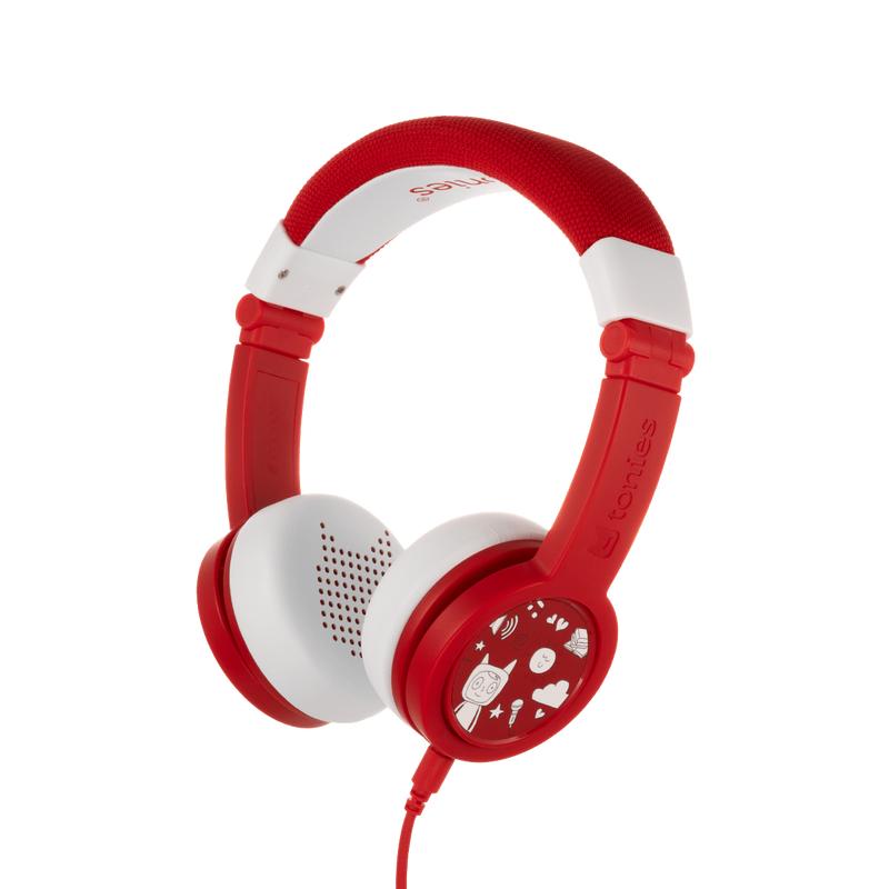 Meet the tonies® Headphones! These foldable, durable, kid-safe, volume-limiting headphones come in six colors to match your Toniebox. Each headphone set includes a matching sticker set and a detachable audio cable with a BuddyJack splitter for sharing storytime with up to four sets of headphones from a single Toniebox.