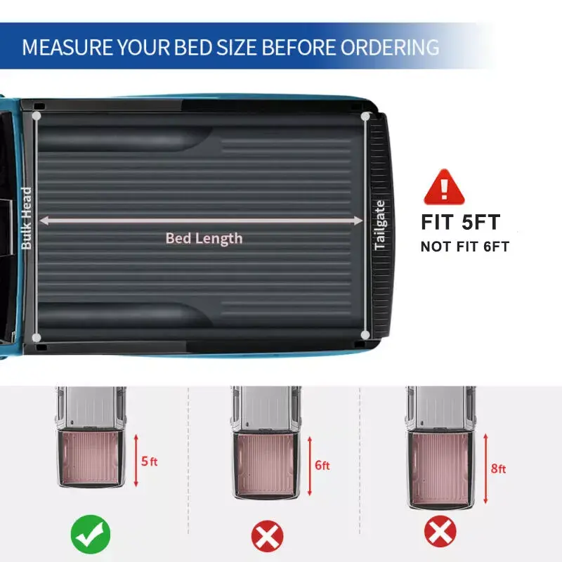 【All Around Protection】 Please measure your truck bed size or contact us before buying. With the tailgate locking, your truck bed can be instantly converted into a 100% secure snow-proof and dust-proof trunk. Waterproof strips are included; The truck bed tonneau cover provides day and night security and all around protection.