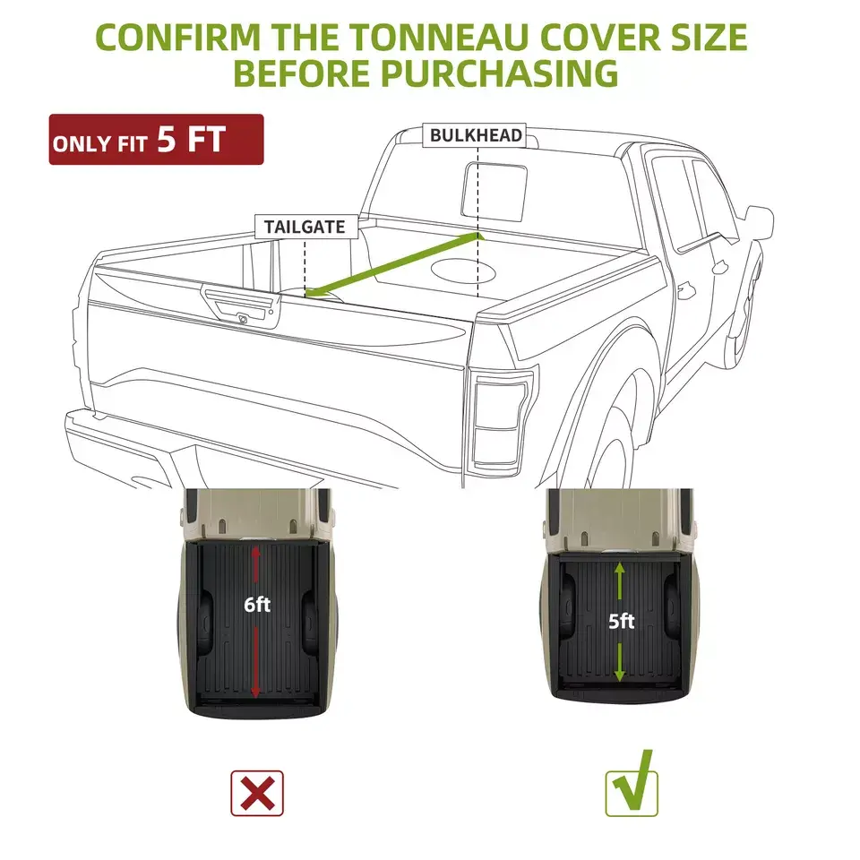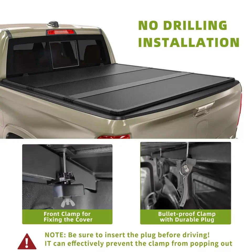 Perfect Fitment: The FRP hard tri-fold tonneau cover is designed to fit Toyota Tacoma 2024-2026 models with a 5 ft bed; This truck bed cover offers a seamless fit, ensuring your truck maintains its sleek appearance