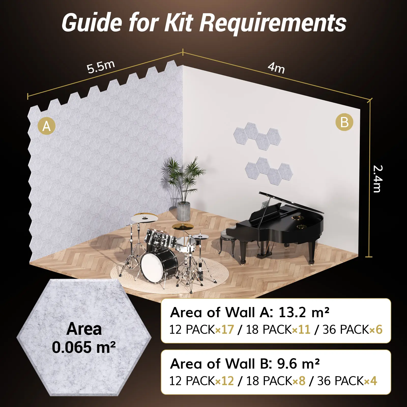 ·Sound Absorption: 0.9 NRC rating, reduces noise frequencies by up to 90%, echoes reduced by 97%