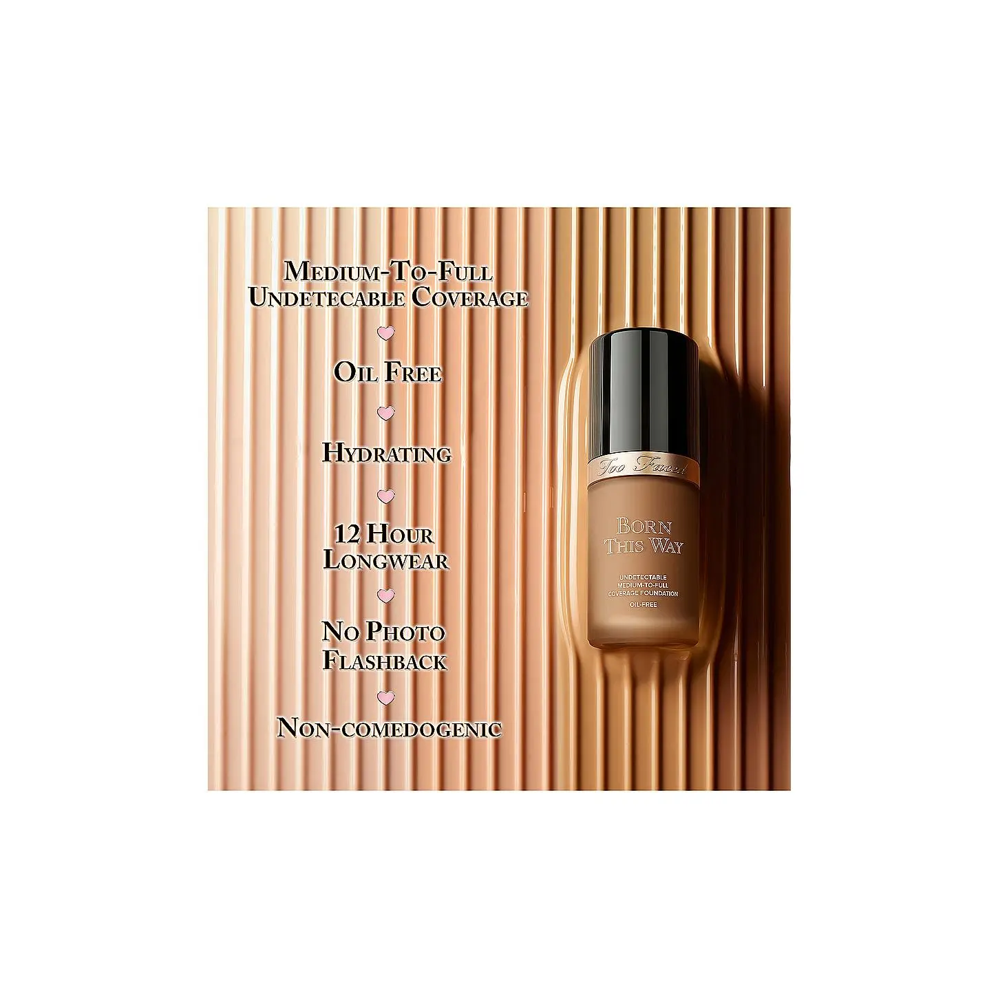 ·Too Faced Born This Way Foundation is an oil-free foundation offering medium-to-full natural coverage.