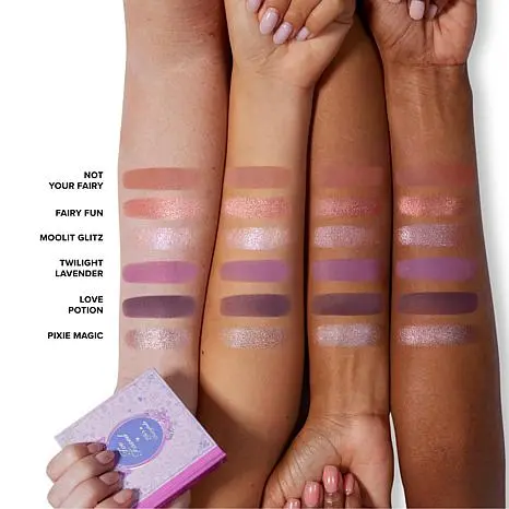 Too Faced Life's A Fairytale Mini Eye Shadow Palette What It Is Effervescent fairytale-inspired eye looks have never been easier! This beautifully blendable, high-pigment formula looks like pure, ethereal magic and smells like an enchanted flower garden.  What You Get Life's A Fairytale Palette  What It Does 6 new and exclusive high-pigment shades Ethereal matte, metallic and shimmer shades Packable purse-size palette Effortlessly blendable formula with one-swipe payoff Creamy, silky texture Smells like a flower garden Shade Names Moonlit Glitz: Purple Multi-Color Shimmer Twilight Lavender: Lavender Matte Pixie Magic: Grey-Bronze Metallic Not Your Fairy: Rose Beige Matte Fairy Fun: Brown Metallic Love Potion: Deep Purple Matte   How to Use Prime eyelids with Shadow Insurance Eye Shadow Primer and blend out using a clean fingertip or a flat eye shadow brush. Define crease with a matte shade using a fluffy blending brush. Place brush tip in the crease starting from outer corner and lightly buffing to the inner corner in a rainbow motion. Layer for color intensity. Apply your choice of shade onto the eyelid using a flat eye shadow brush. For shimmer shades, apply using a clean fingertip and a tapping motion to intensify shimmer.