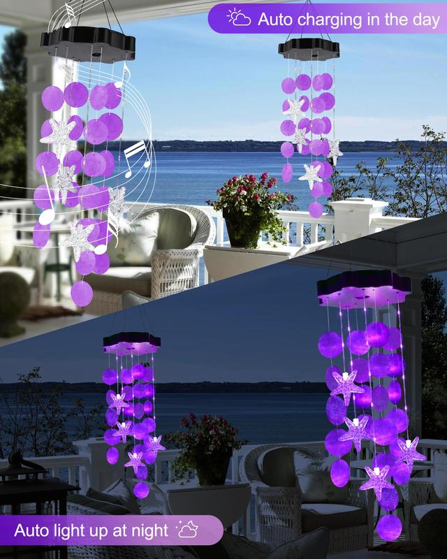 CRAFTED FROM NATURAL SEASHELLS - Our solar decorative lights outdoor is made from natural seashells glass imported from the Philippines, hang it in your porch, window, backyard, garden or patio, as breeze blowing, it transports you to the beach with its authentic seashell sounds, enjoy the refreshing feeling of the ocean breeze at home. It's a great gift for friends and family that will bring them comfort during times of loss