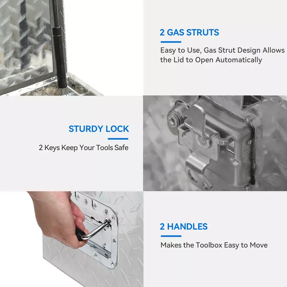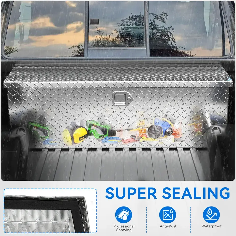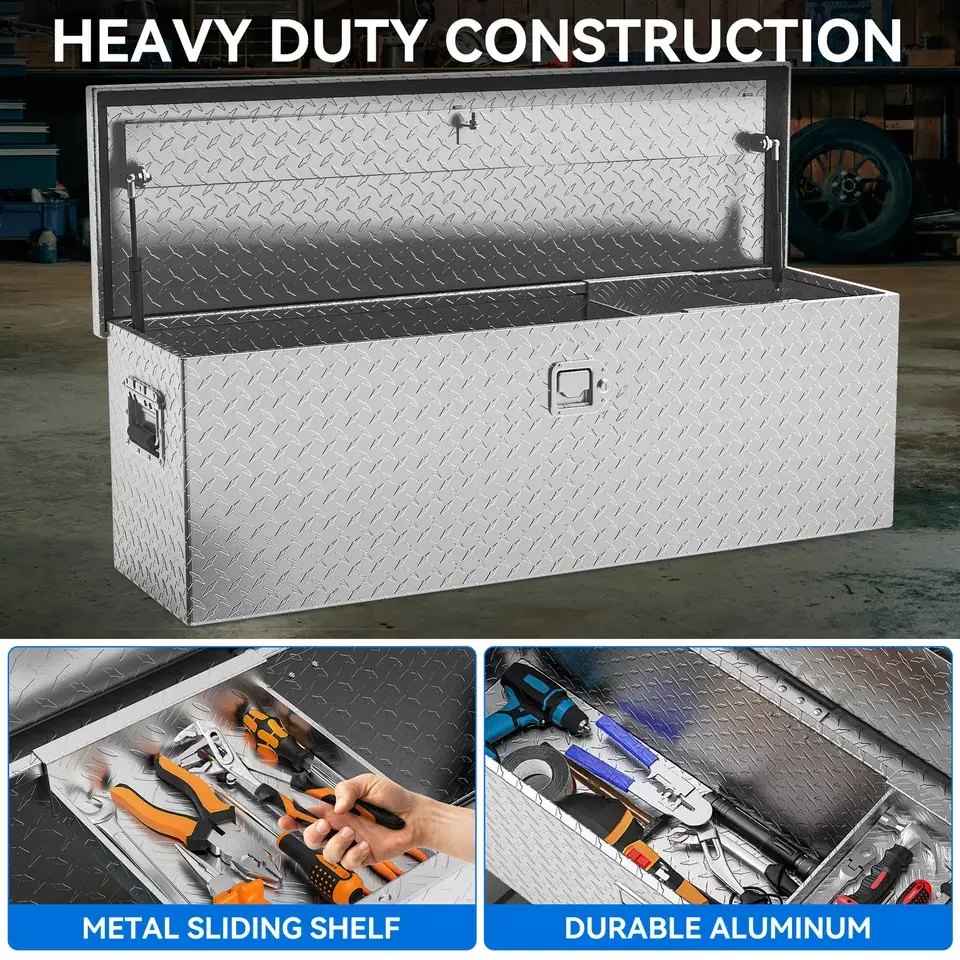 DURABLE: This truck toolbox is constructed with high-density aluminum and non-slip surface while being highly resistant to oxidation, ensuring it maintains an attractive appearance and stable performance in harsh environments over time