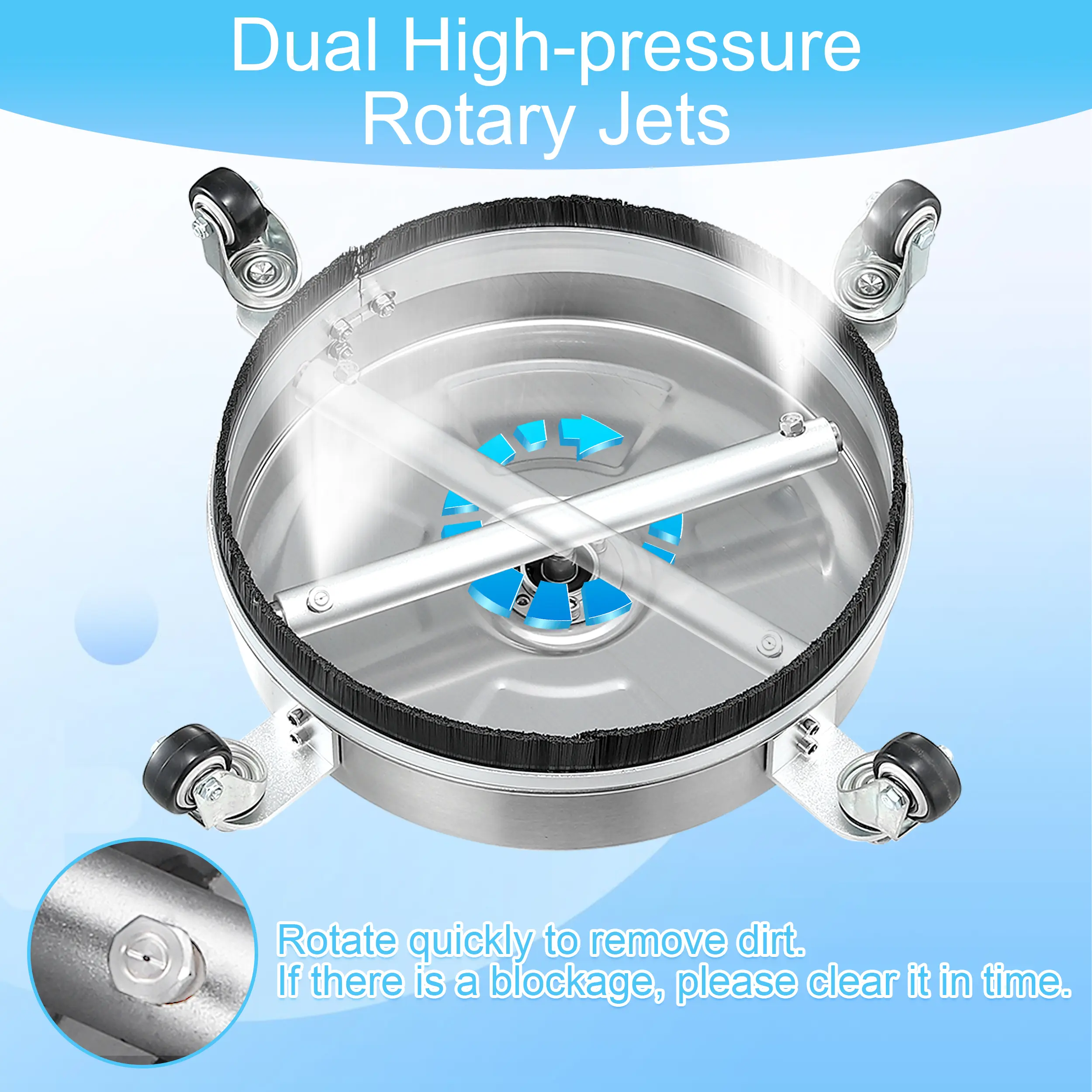 DURABLE CONSTRUCTION: Crafted from premium stainless steel, this power washer surface cleaner is designed for longevity. Its robust build ensures durability and long life, even with regular use. It can endure demanding cleaning tasks, making it a dependable option for both residential and commercial purposes.