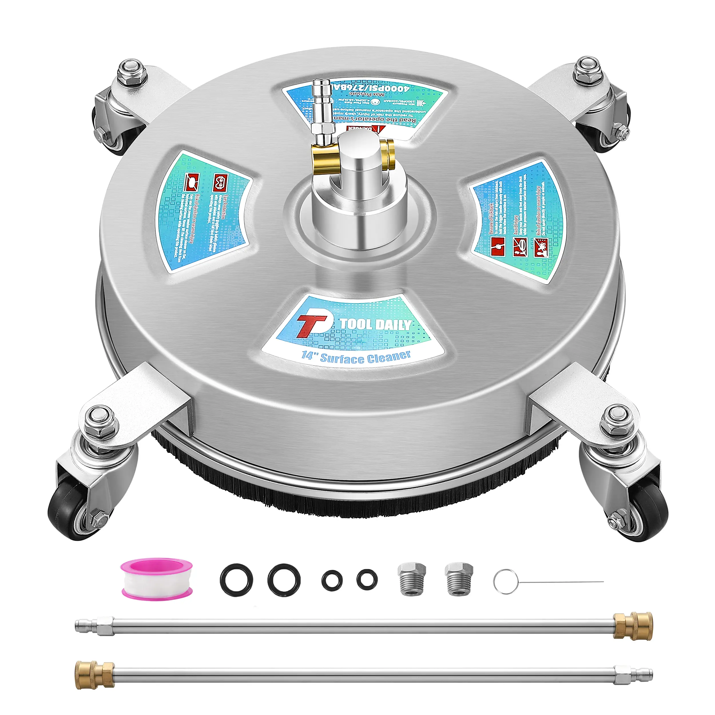 APPLICATION: The 14-inch surface cleaner outperforms a standard pressure washer's spray tool in efficiency, making it perfect for extensive cleaning chores. It stands out in cleaning vast areas like driveways, patios, rooftops, walls, and sidewalks.