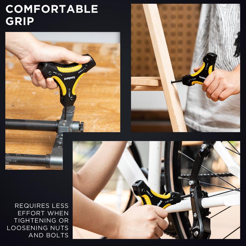 ·User-Friendly Features: Covered hex key axes prevent snagging on clothes; folding design offers compact storage and easy portability, setting it apart from traditional hex key sets; triple-handle design allows for more flexible operation in confined spaces, suitable for various professional and DIY purposes.