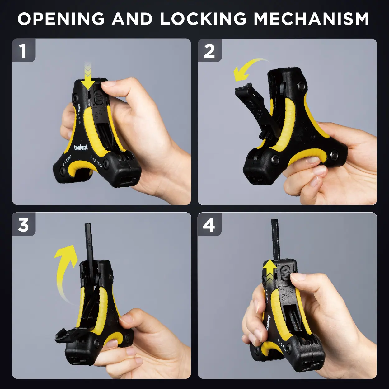 ·Innovative Locking Mechanism: Features a unique opening mechanism that allows for easy selection of the desired key size, with a locking feature to keep the selected hex key firmly in place during use, ensuring stability and safety.