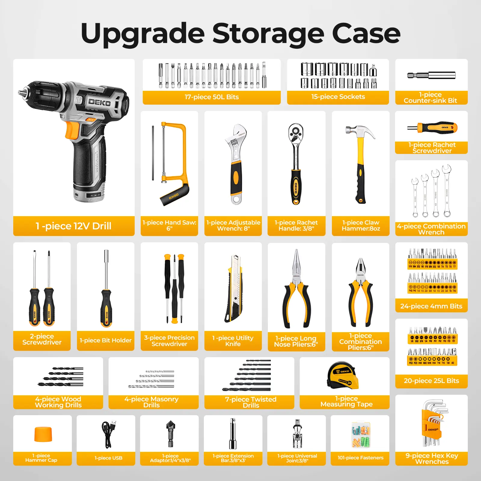 The complete portable tool set now with an extra drawer for better tool organization! Includes screwdriver, socket, and wrench sets—perfect for home improvement projects. Durable materials and comprehensive accessories make this kit even more practical. / ¡Caja de herramientas portátil con nuevo diseño y cajón adicional para organizar mejor las herramientas!